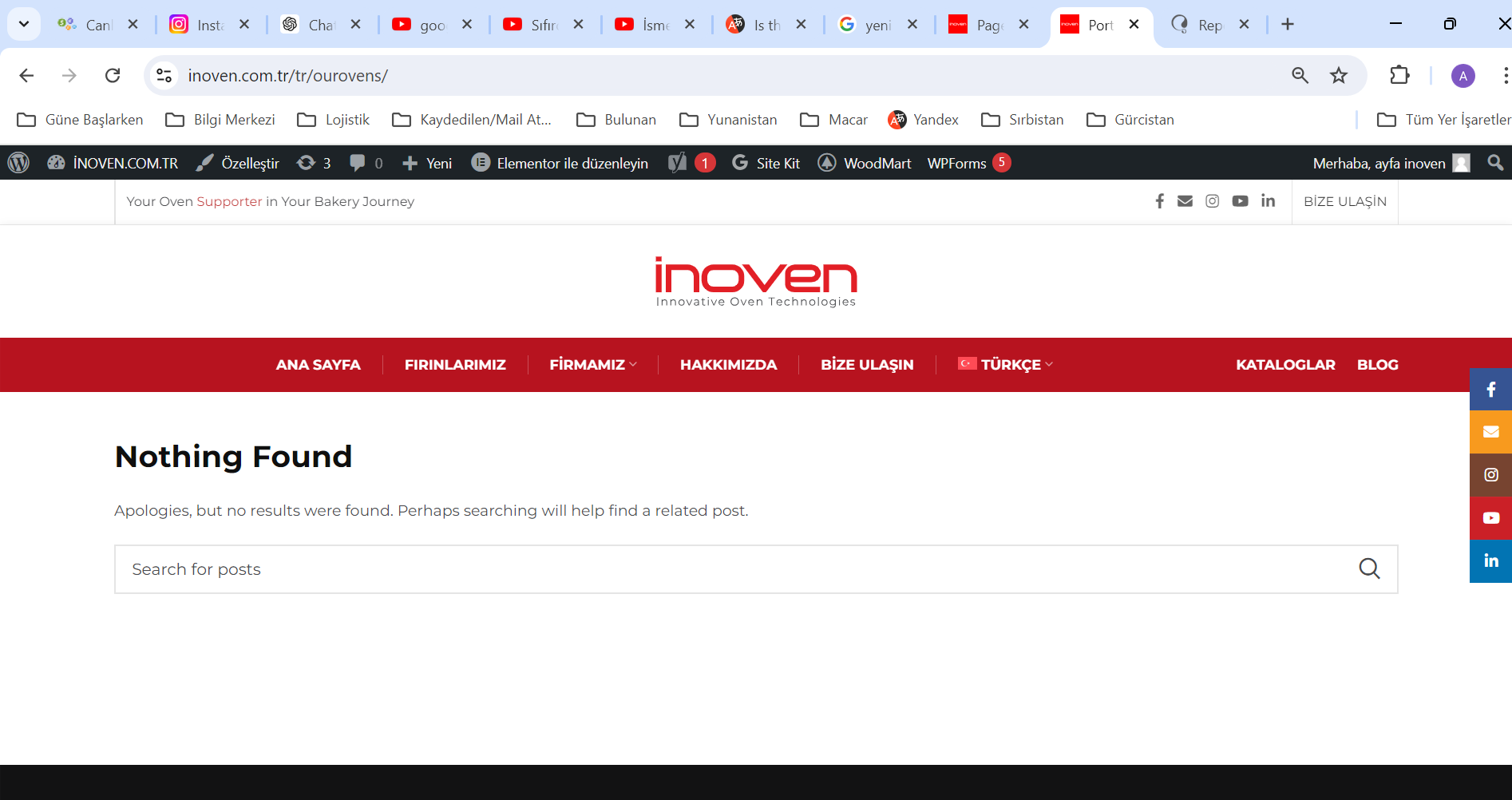 You are experiencing a 'nothing found' issue on some pages after translating your website from English to Turkish.