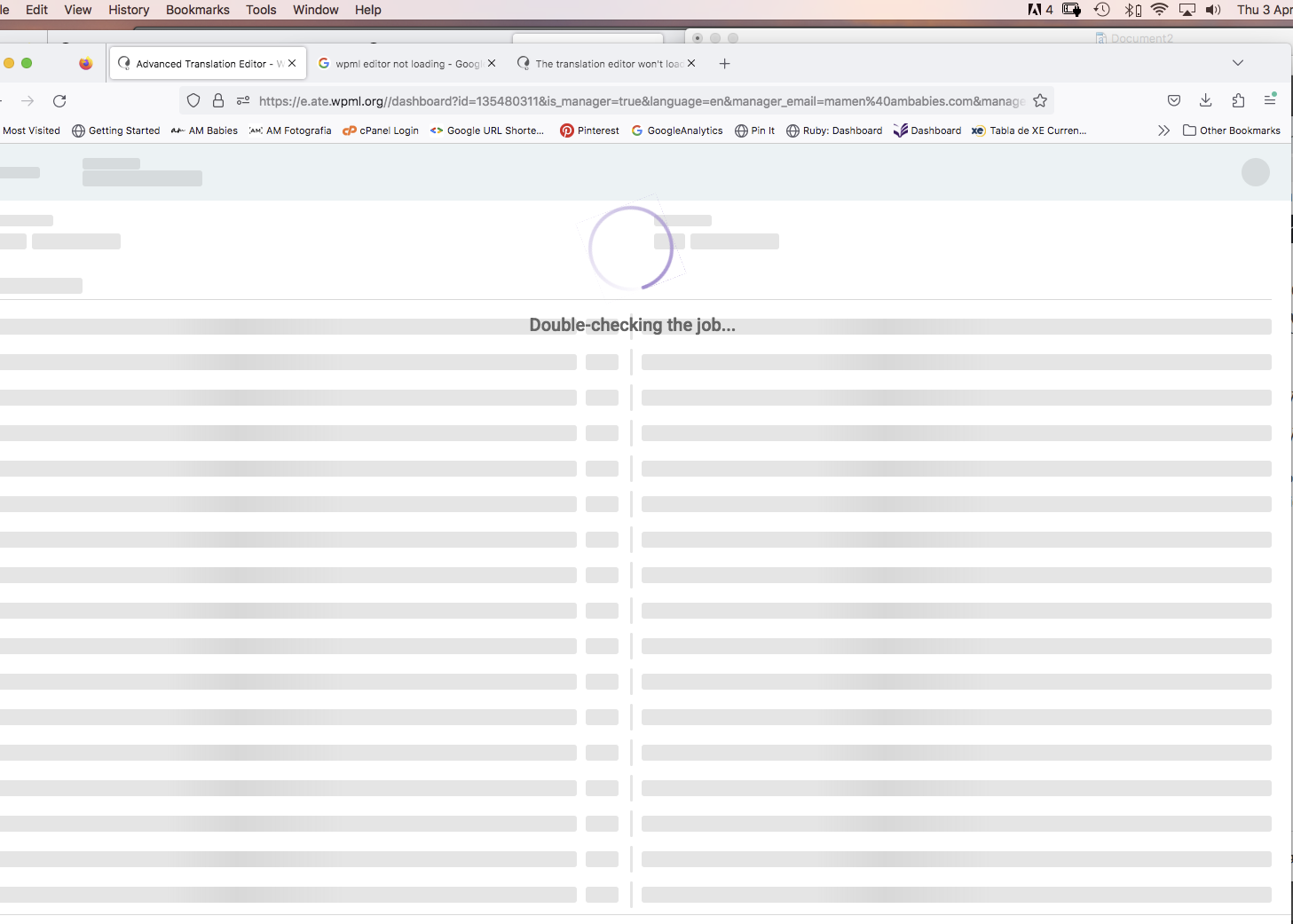 The Advance Translation Editor won't open and gets stuck in 'checking content'. When I try to go to translation jobs and open it there, the same issue occurs.