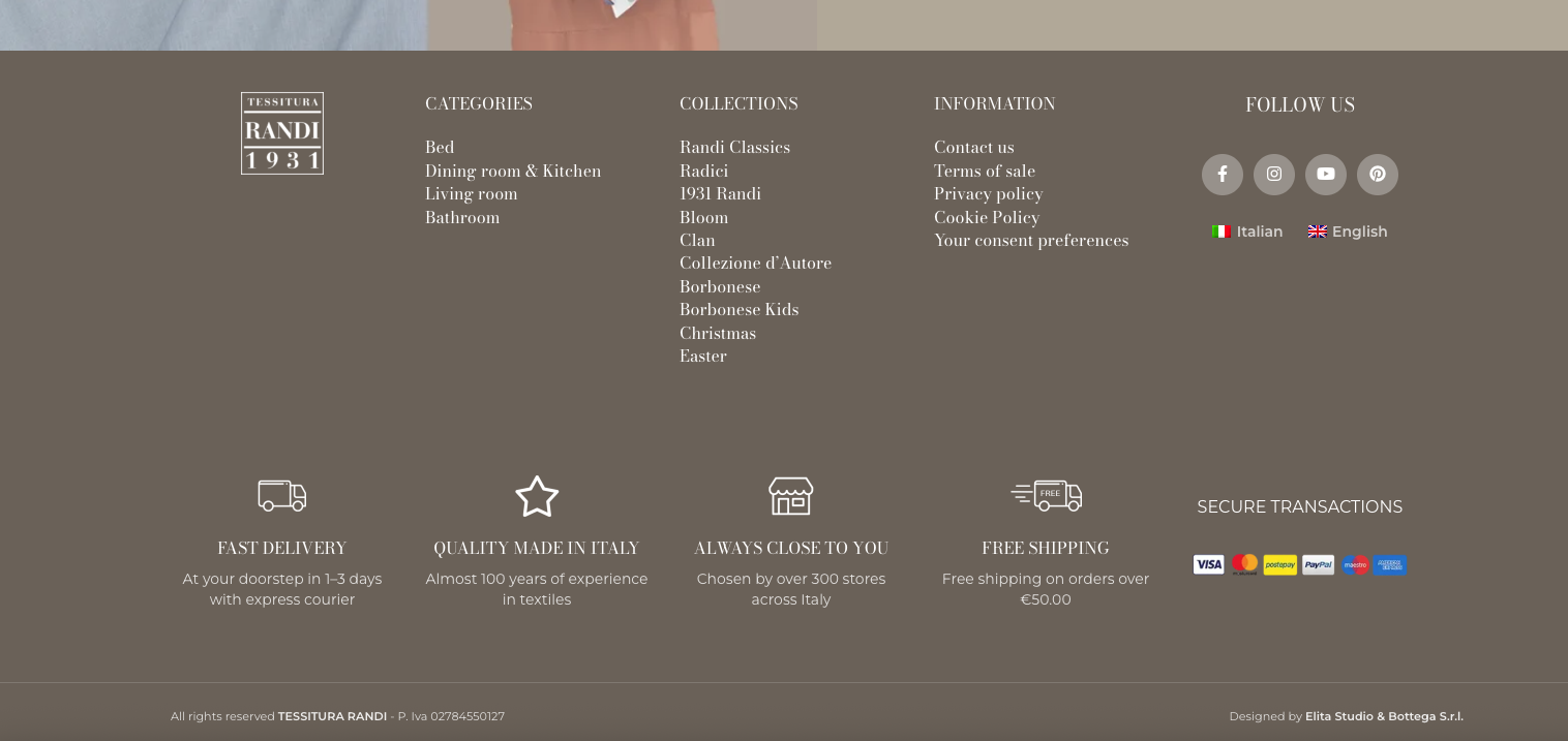 As you’ll see, in the English version, both the text and the video banner created with Slider Revolution are in Italian instead of English — and this happened on many pages of the site, including the home page. Fortunately, it doesn’t seem to have affected the products.
