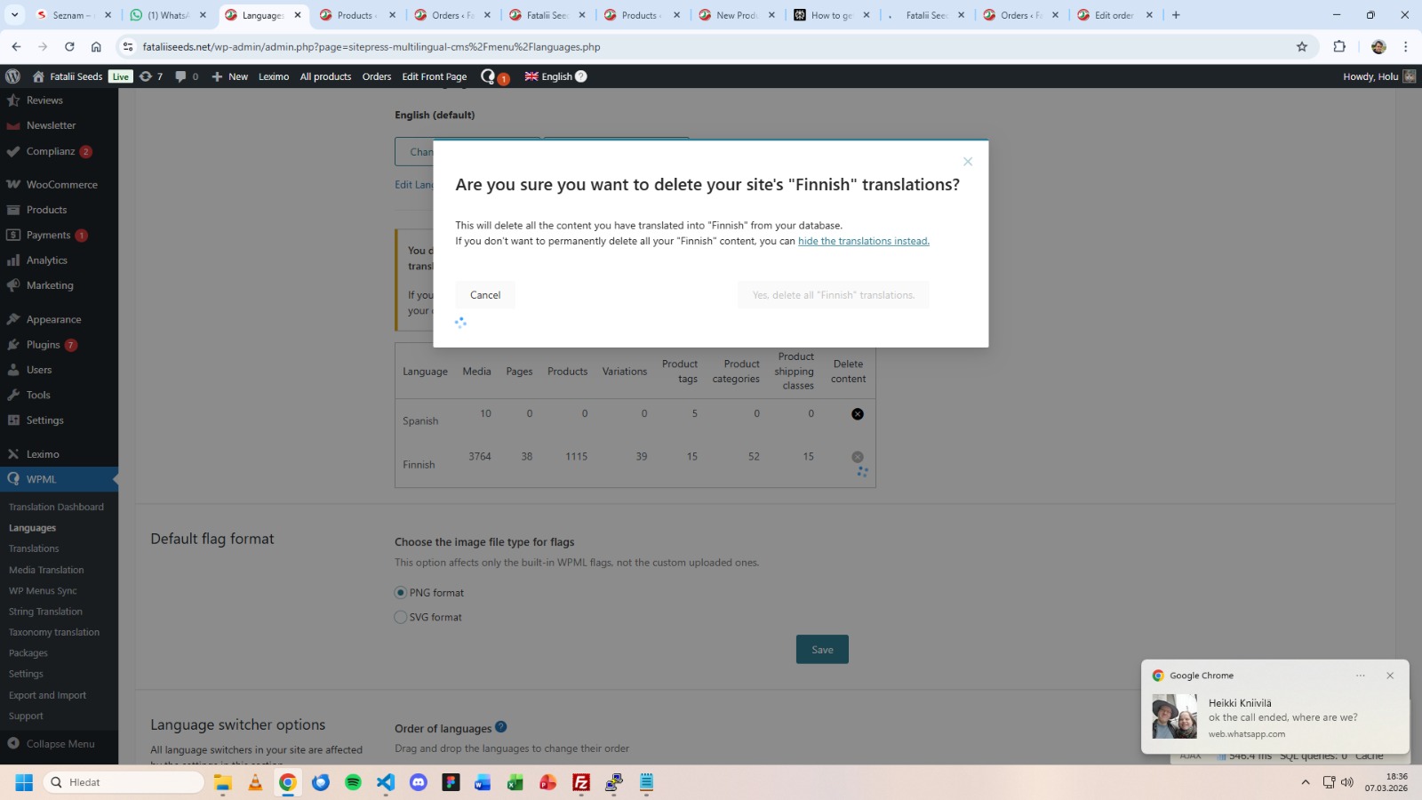 https://wpml.org/forums/topic/cant-review-some-translations-it-gives-me-an-error/ So the problem today seems to be that at some point the translations can't be approved and then it seems nothing can be approved after that. I tried to make some change to a product and approve it (after some days) and it works. But when it goes to the state of "not working", it wont approve more products (as told by my translator person) Also there is a problem that the site is not responding, but that's another case and i will open a ticket for that also. |