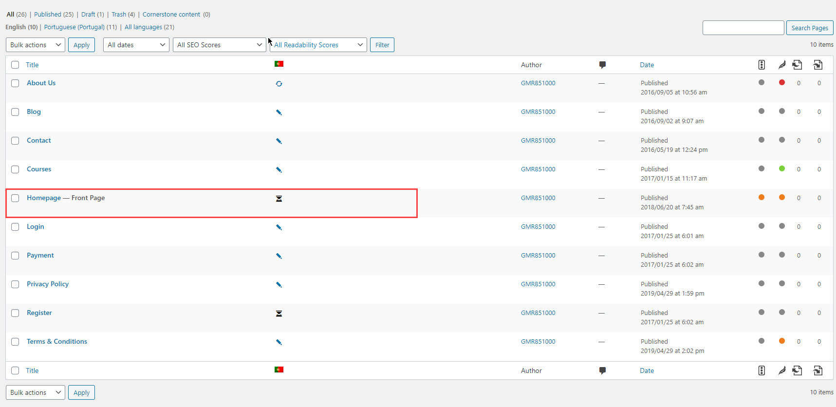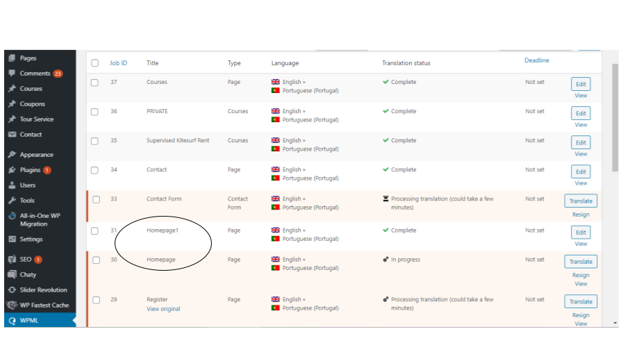 both english and portuguese Courses page is 30px spacing. but ONLY in Portuguese the gap was happening I put it down to 10px to see if it updates, and the gap is now on the English version... Something really strange happening Another strange thing is when I click the icon to translate page "Inicio" (original Homepage) it gives me a completely different content to translate... When you mention "Note: The translated courses page needs to be updated.", how exactly i do this? |