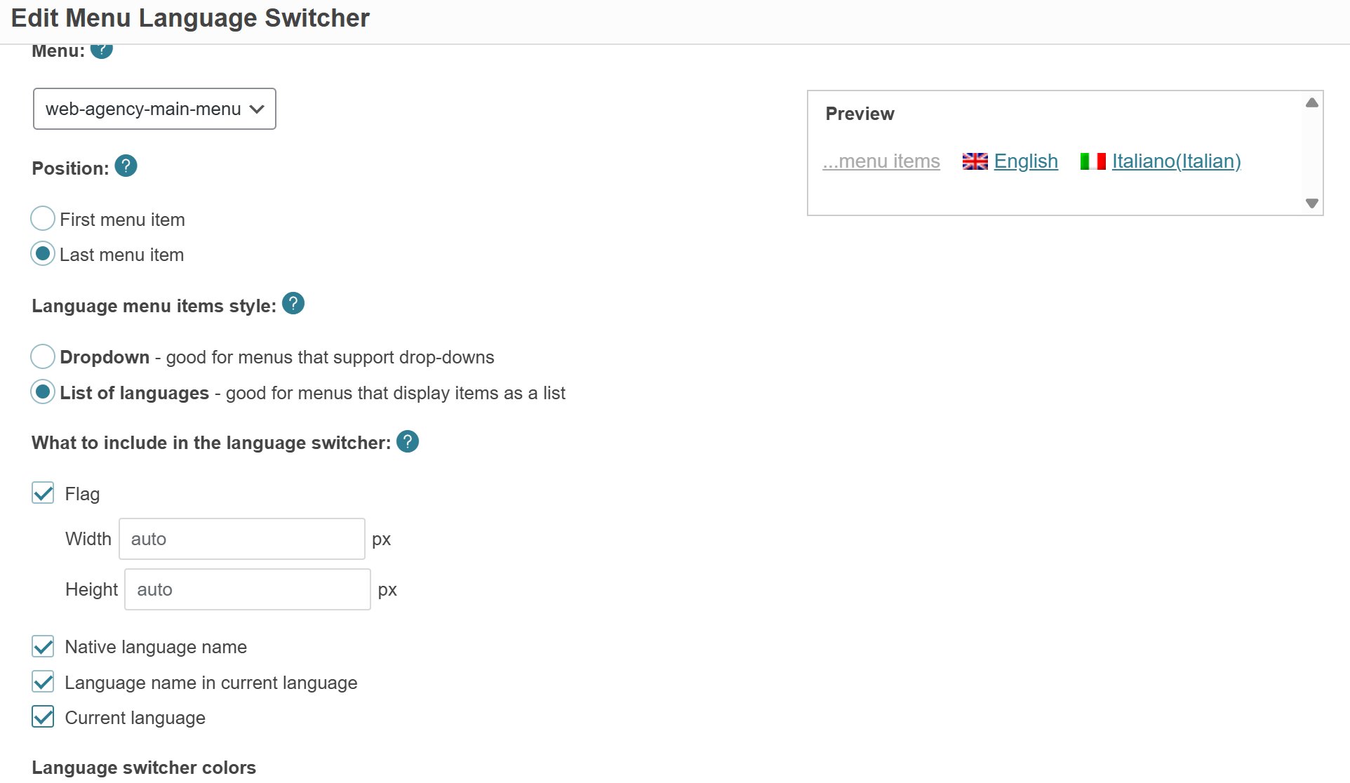 Now I've managed to install it, it's appearing in my WP toolbar and list of plugins. But I still can't get it to work: whatever I set on the menu language switcher, I either see nothing on my homepage menu or the British flag. I cannot access the Italian pages. (please see attached images). Please help me! Thank you for your assistance. Hope you're having a good day. Elena