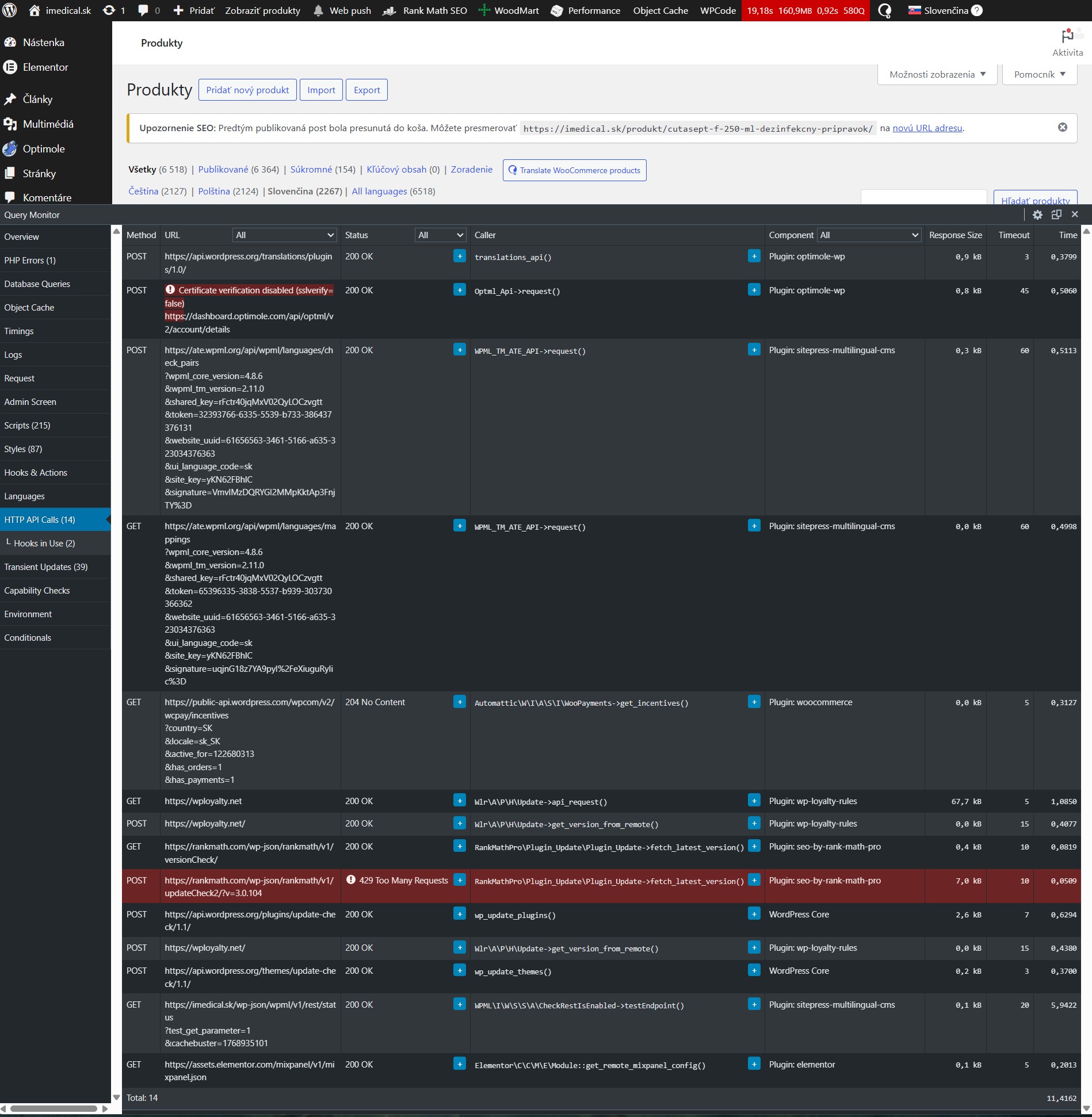 - I can also see multiple other WPML-related remote calls being triggered on each admin load.