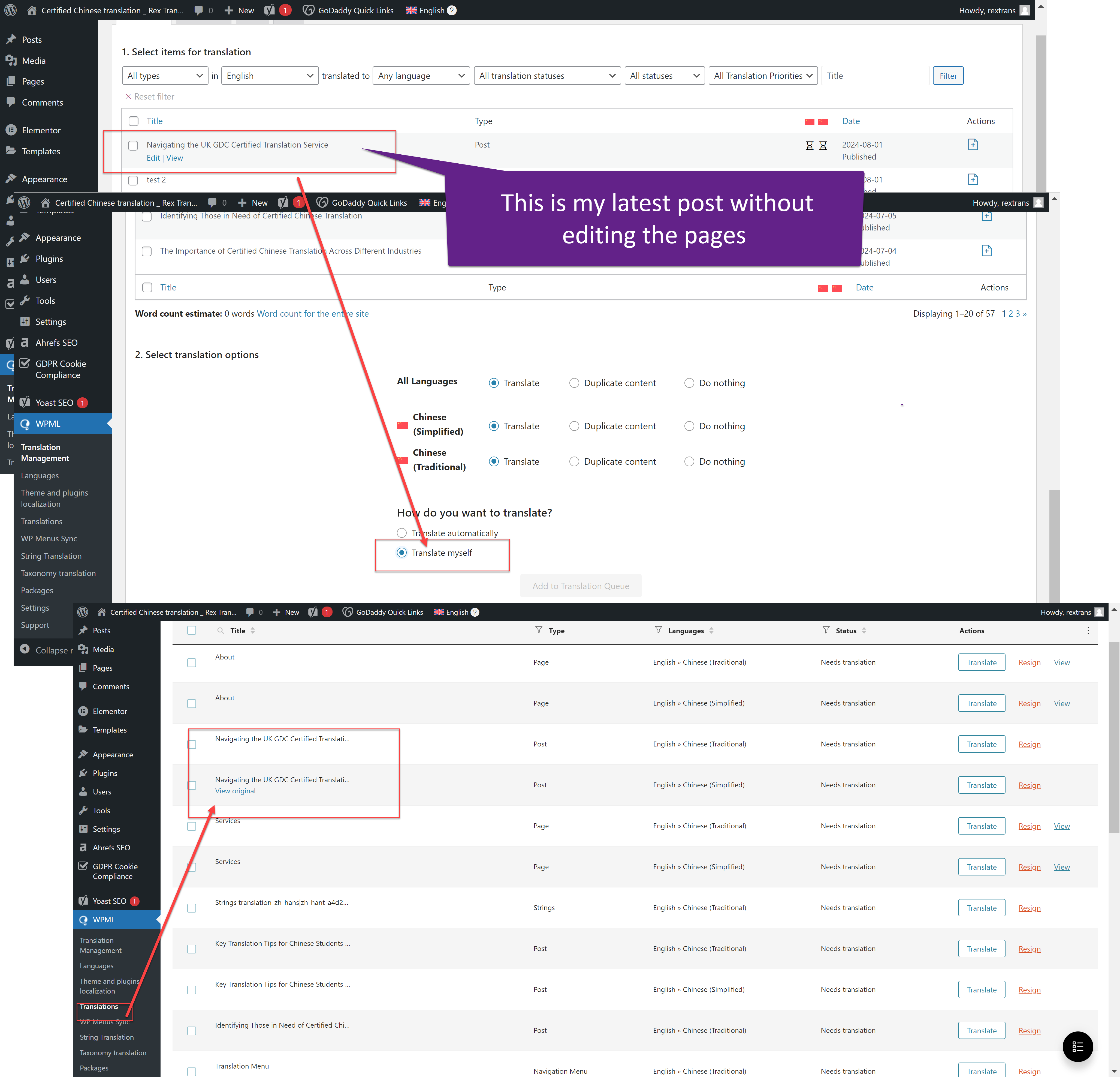 It is important to try to avoid editing the pages while translation jobs are in progress. If you need to make changes to the page, make sure to send the job for translation again.