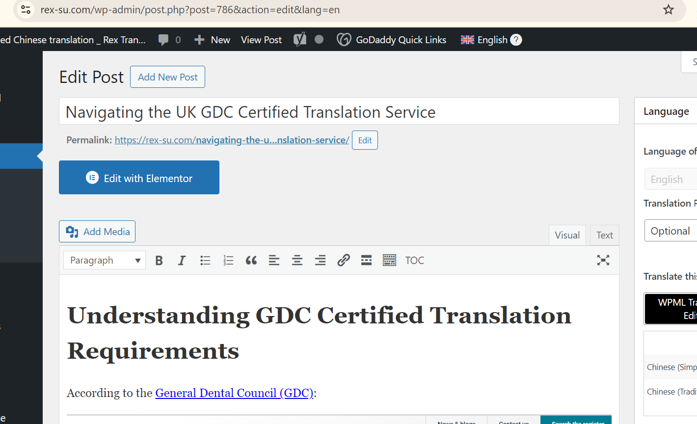 I used the WordPress Editor sometimes, and the Elementor Editor if neccessary. Both have pros and cons. You can also see the Elementor Editor button in your screenshot.