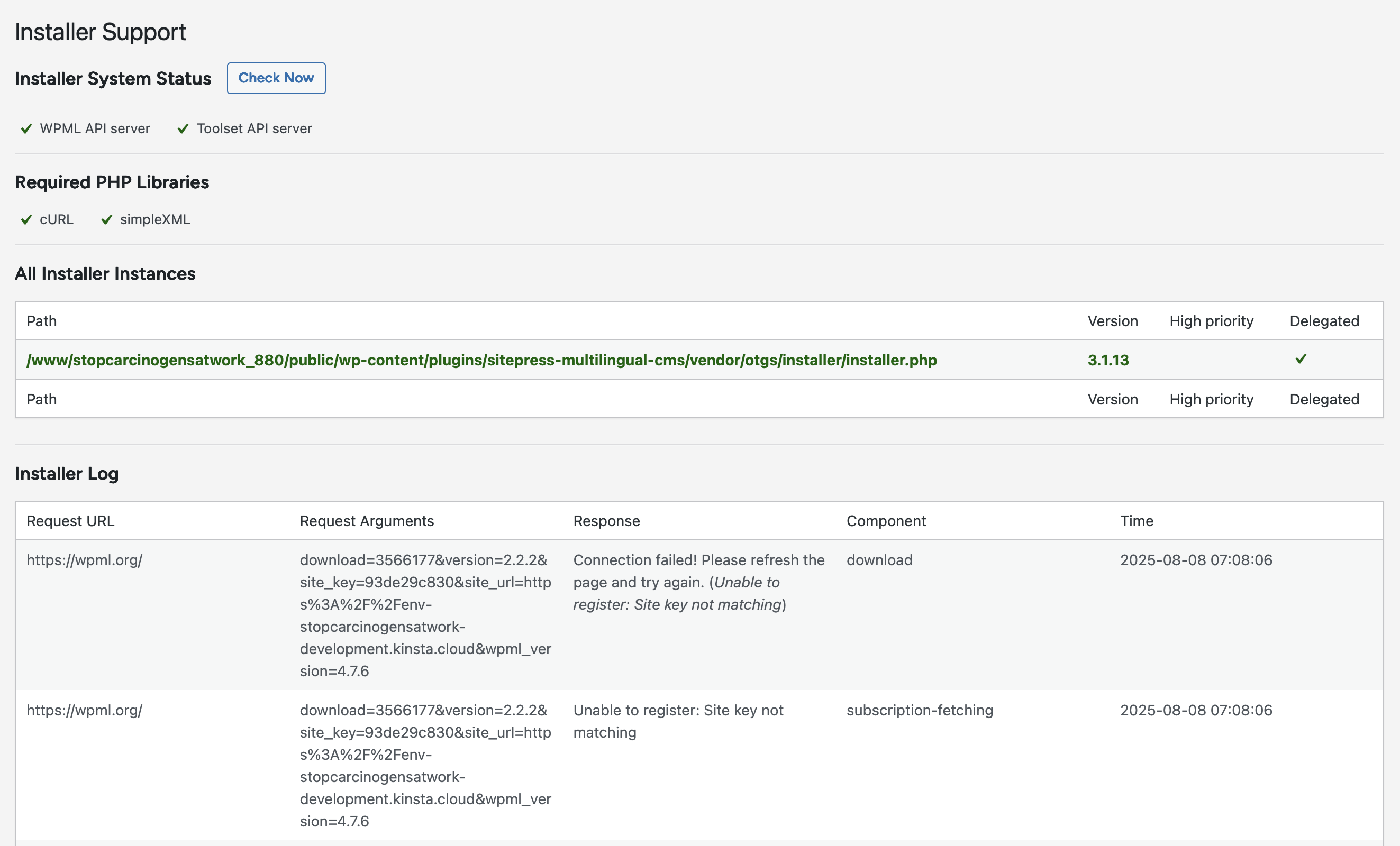 Whenever you migrate you'll need to change the sitekey. Maybe you have the sitekey fom another domain registered at the moment and that can be fixed by going to plugins > Add New > Commercial and then remove the sitekey and add it again. In 4.8 the sitekey will be removed automatically when you migrate using that version to make it more on the nose, by the way :). Anyways, if you can check it out in 4.7.6 and see it works, then you can leave it like that and use that version even know since it's already stable. 4.8 is still a beta (a stable one) so it's a but risky to use that on a live site, but it does work a bit better with the glossary feature. |