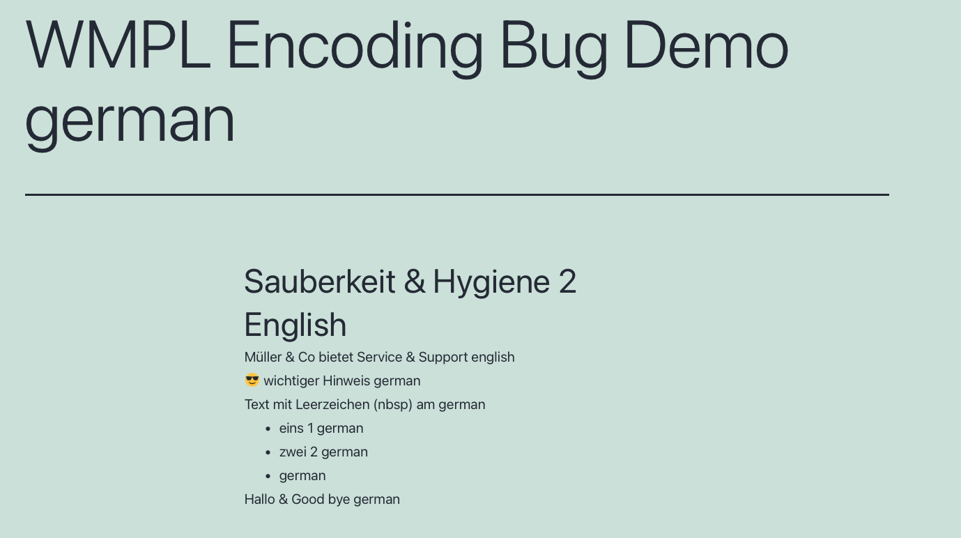 2. WPML extracts and decodes: Sauberkeit & Hygiene