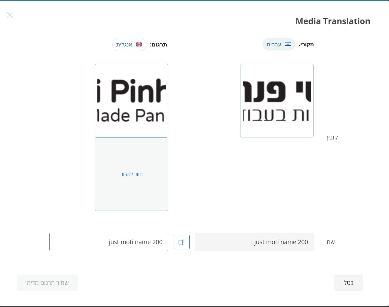 The client is unable to replace a logo image with its English version when the site is translated using Elementor and Woodmart child template.