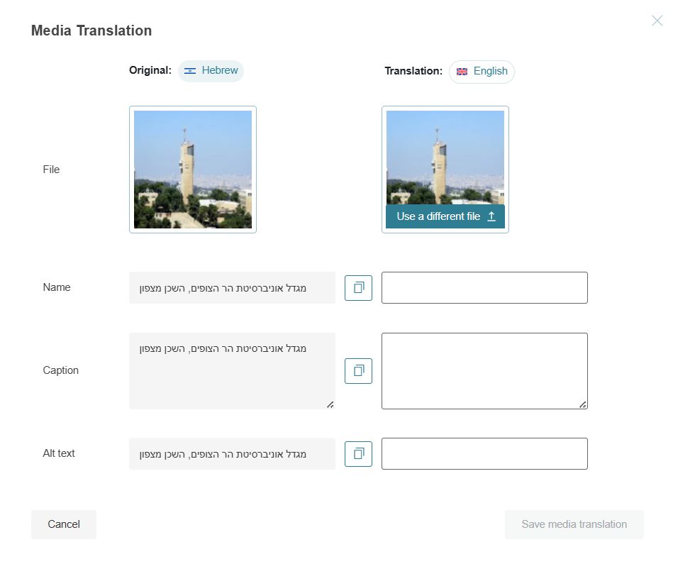 It still doesn't work. The Hebrew captions are copied as is - in Hebrew - to the English translation. The title is badly copied as the original title, i.e. the file name, although I changed the title, it didn't copy it. see attached image.