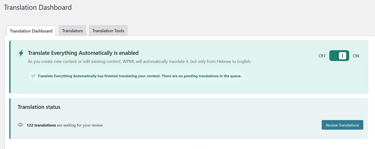 I tried (as I understood it) but it didn't translate automatically in my site; just copied the Hebrew text AS IS to the English side. I restored the backup afterwards.