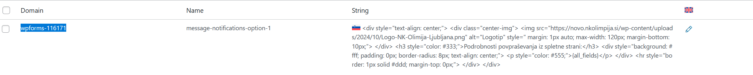 Hi....please check my string for wp form wpforms-116171 I have slovenian tekst in strings and i get english headlines on mails. This is something that is not on me anymore. I need it someone to take a look and give me a solution ASAP!