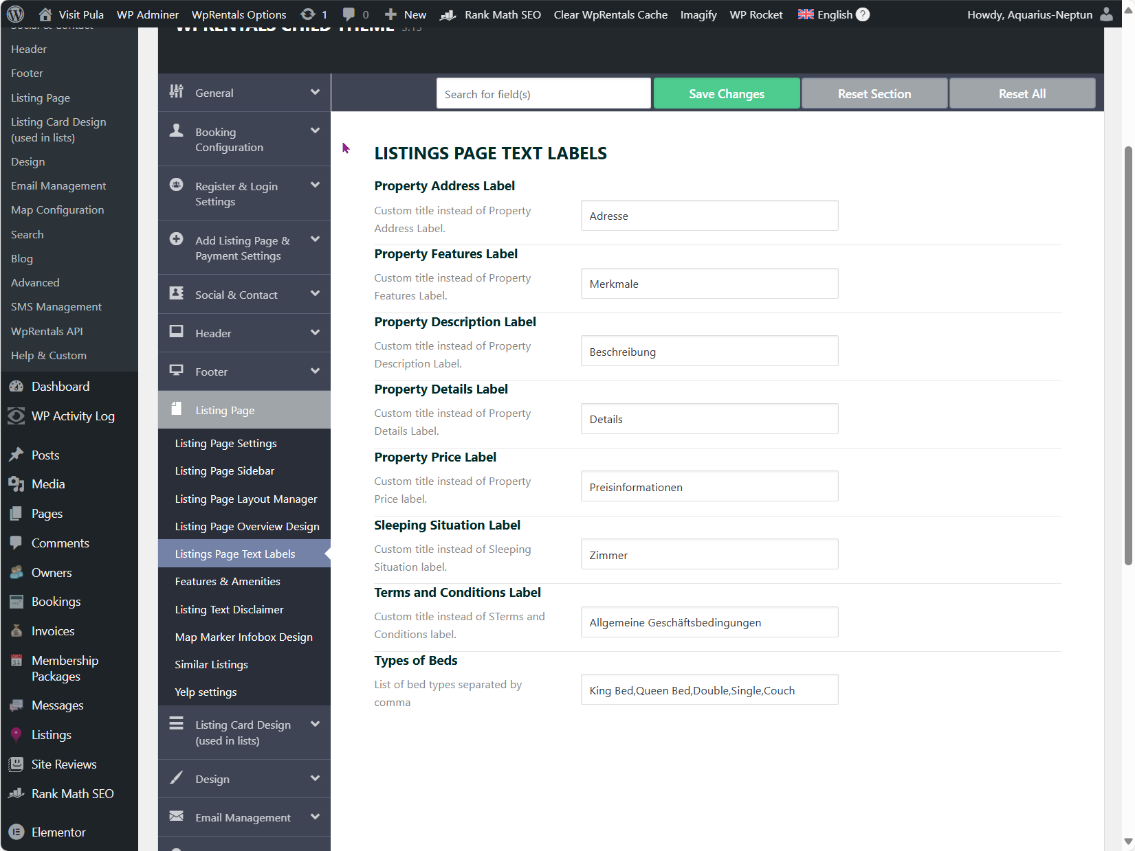 In the database I can see that the option named wprentals_admin has been updated with the Croatian texts.