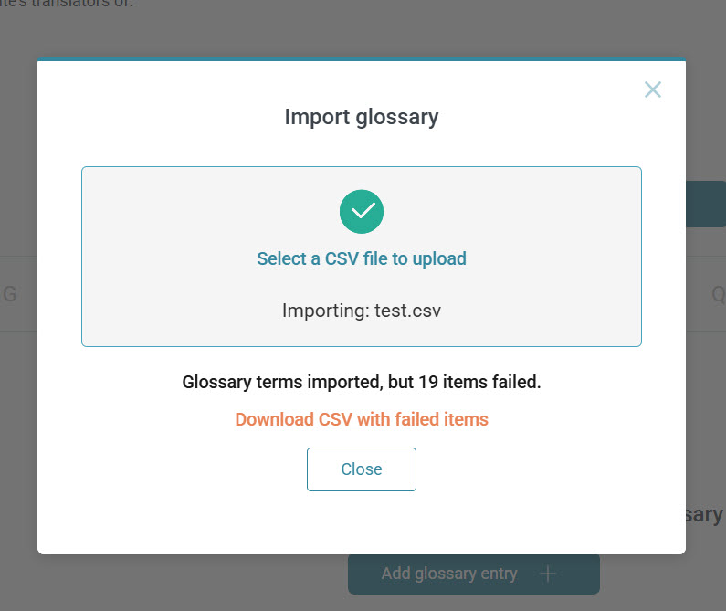 1. Ensure the CSV headers match the language codes (e.g., EN, EN_US) and include a 'Description' column if used.