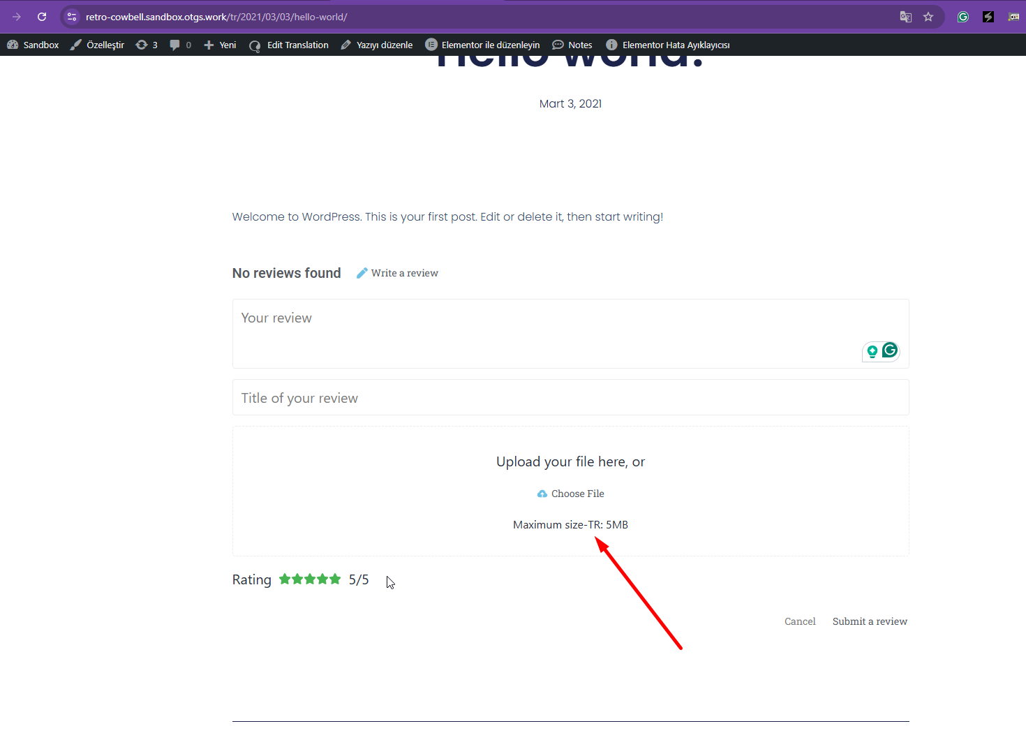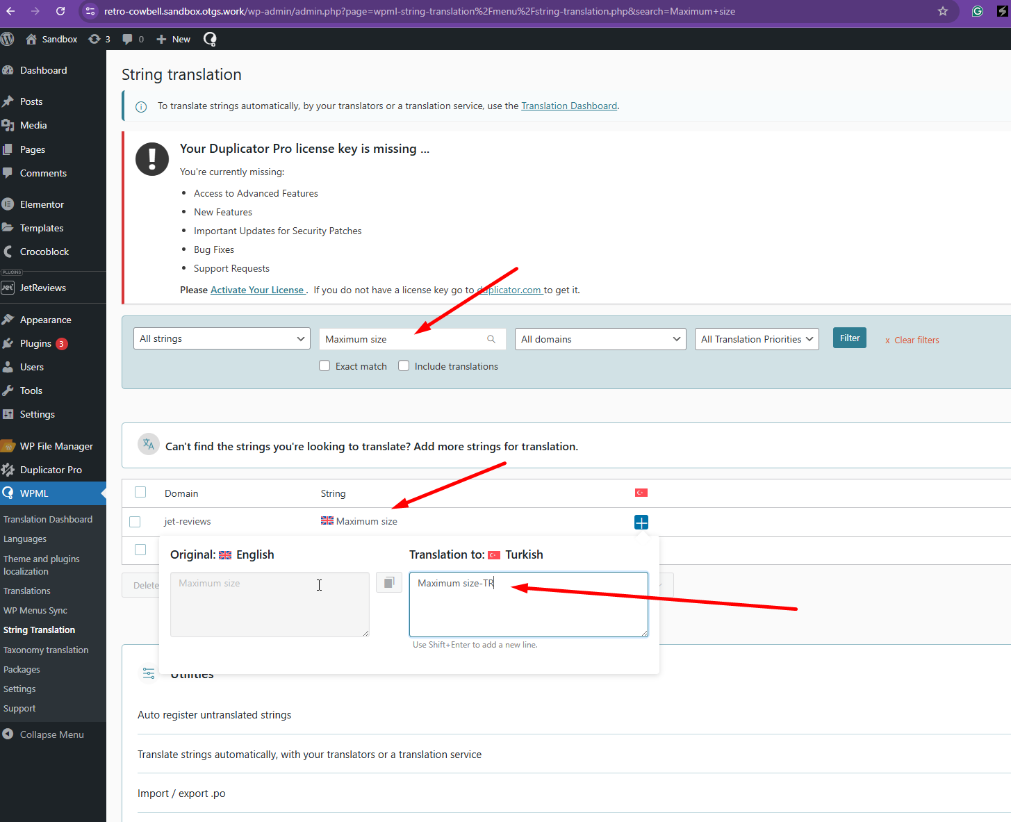 Once you've done that, you'll be able to translate the "Choose File" and "Maximum file" strings using the String Translation.