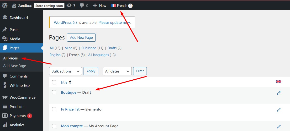 - Switch to the secondary language using the admin language switcher and check if they are set as "Draft." as you can see in the attached screenshot.
