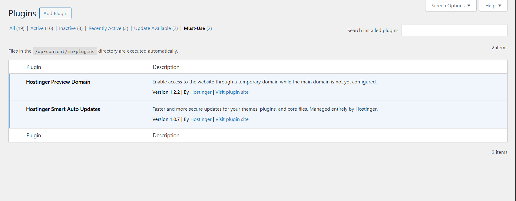 1. Remove the Hostinger MU plugins from