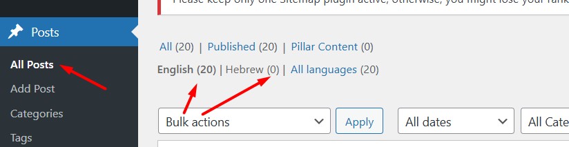 3. I noticed the posts and categories aren’t translated yet. Please translate them so they appear correctly on the secondary-language pages.