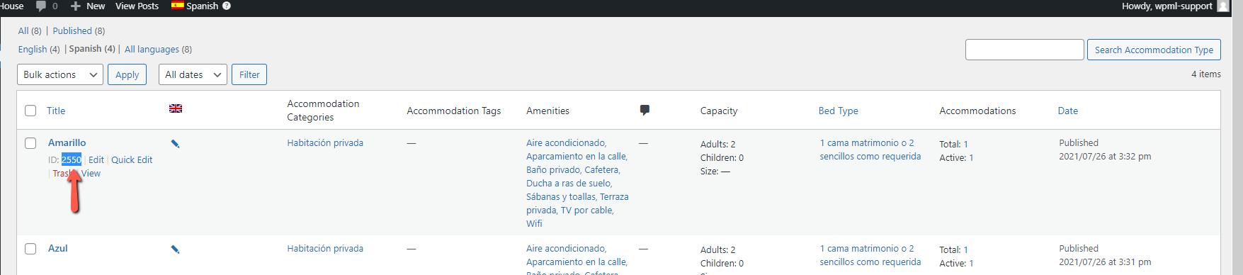 I had thought that the translated page would have the same ID. I didn't realise that you had to put a different ID for the spanish page. i realised that this method worked, but thought that would give an error in the booking process. if you have a different ID for the same property, will it treat it as 2 separate properties? not sure. but i'll get on to motopress for this question. thanks again.