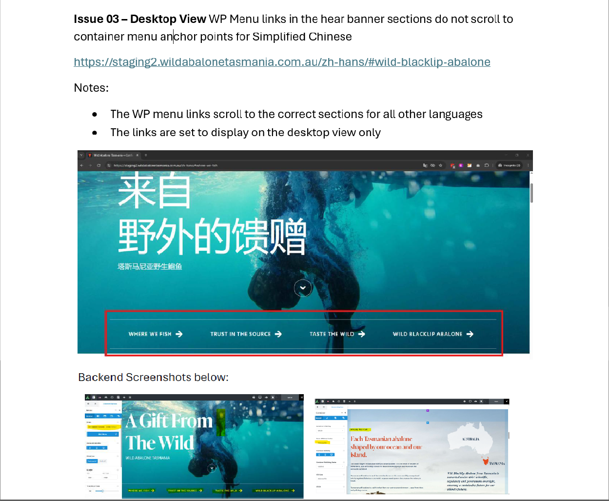 Issue 03 – Desktop View WP Menu links in the hear banner sections do not scroll to container menu anchor points for Simplified Chinese hidden link (Screengrab attached)