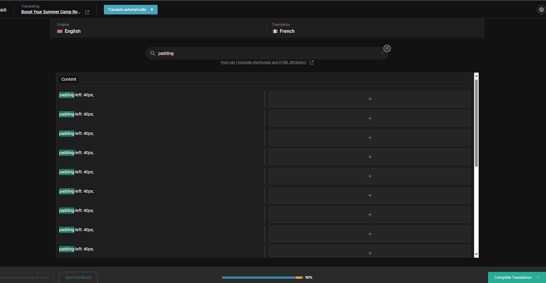 Take note, that it is not recommended to use inlide CSS when working with the Advanced Translation Editor, as you need to translate it.