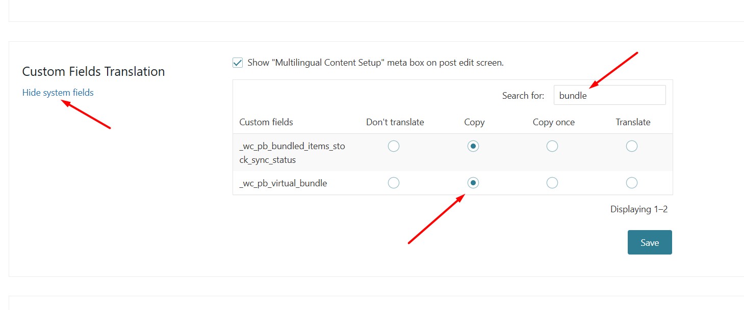 1. Go to WPML >> Settings > Custom Fields Translation section.
