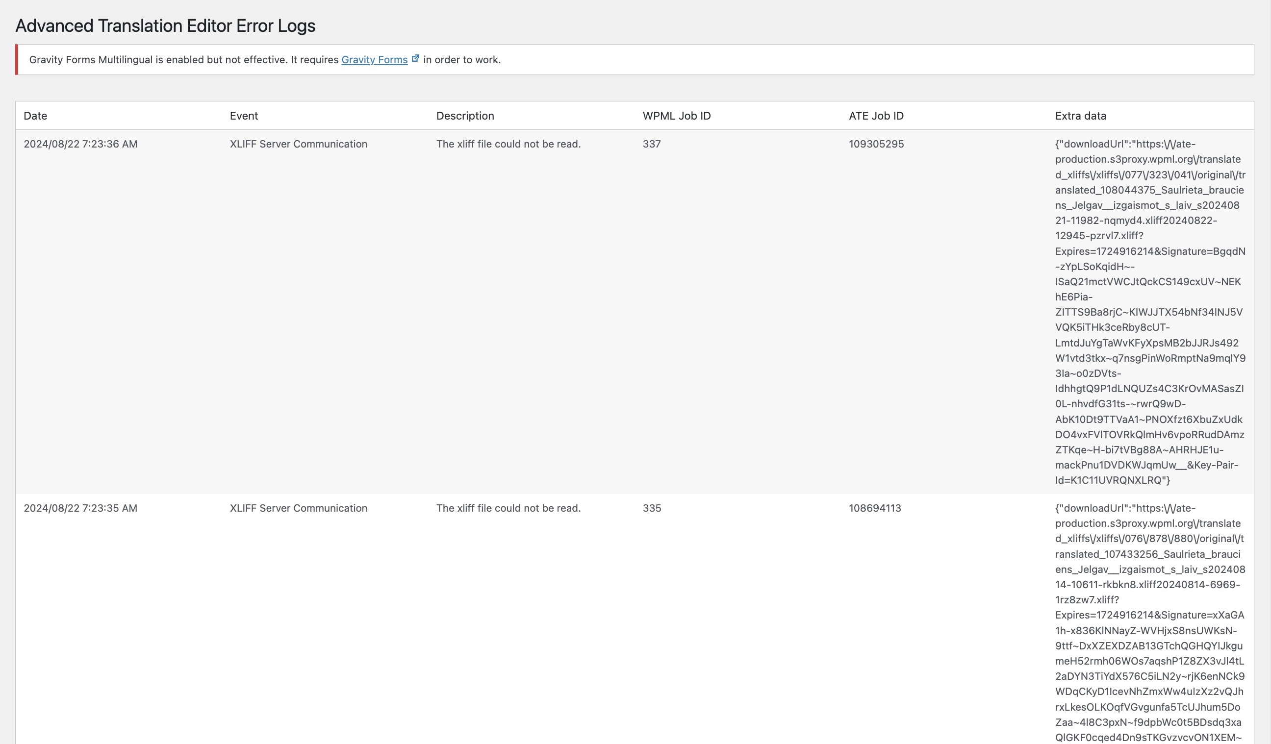 WooCommerce Multilingual & Multicurrency was already updated to 5.3.7. I probably copied that debug info, before I did that. Anyway this didn't solve my problem. I also attached screenshot with the errors logs from the advanced translation editor. These logs are related to this issue, because url contains words from that problematic product. |