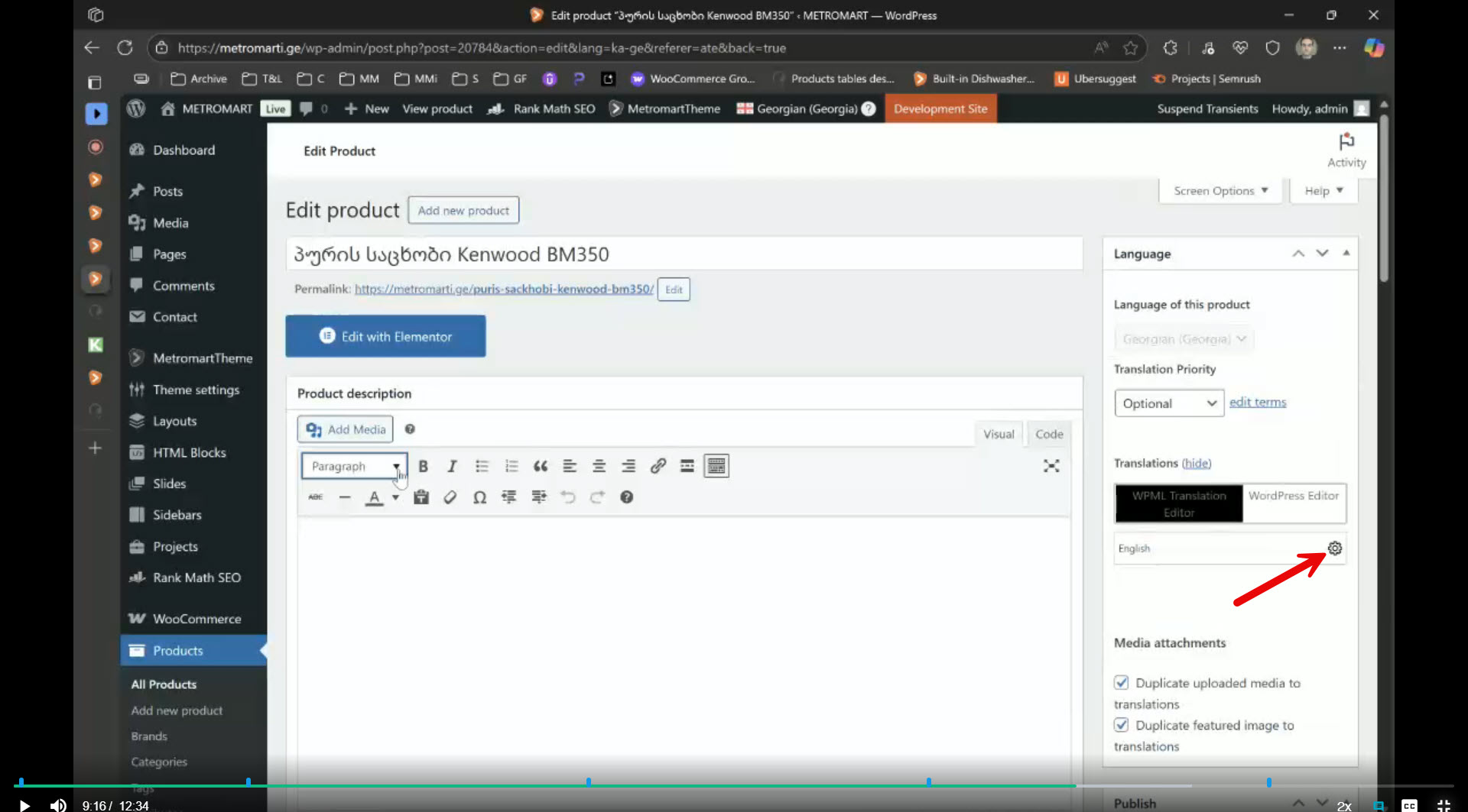 Hi, Thanks for the detailed video! From your video, the following is unclear to me. Also, in your video, at around 9-10 minutes, you are making a change to a product, and things break. You changed a global attribute in the default language and updated the English translation with the Advanced Translation Editor, and half of the specs in English got missed. This most probably happened because the translation was in progress. You can tell it by the gear icon. Please see the attached screenshot. The problem is this: a change to the original product while the translation is in progress will not take effect. You must first complete the in-progress translation to make the pencil icon display. Only then can you make a change to the original product, and then update the translated product. After updating the original product, the circled arrow icon will show. The circled arrow icon designates that the translation needs an update. You asked the following questions.