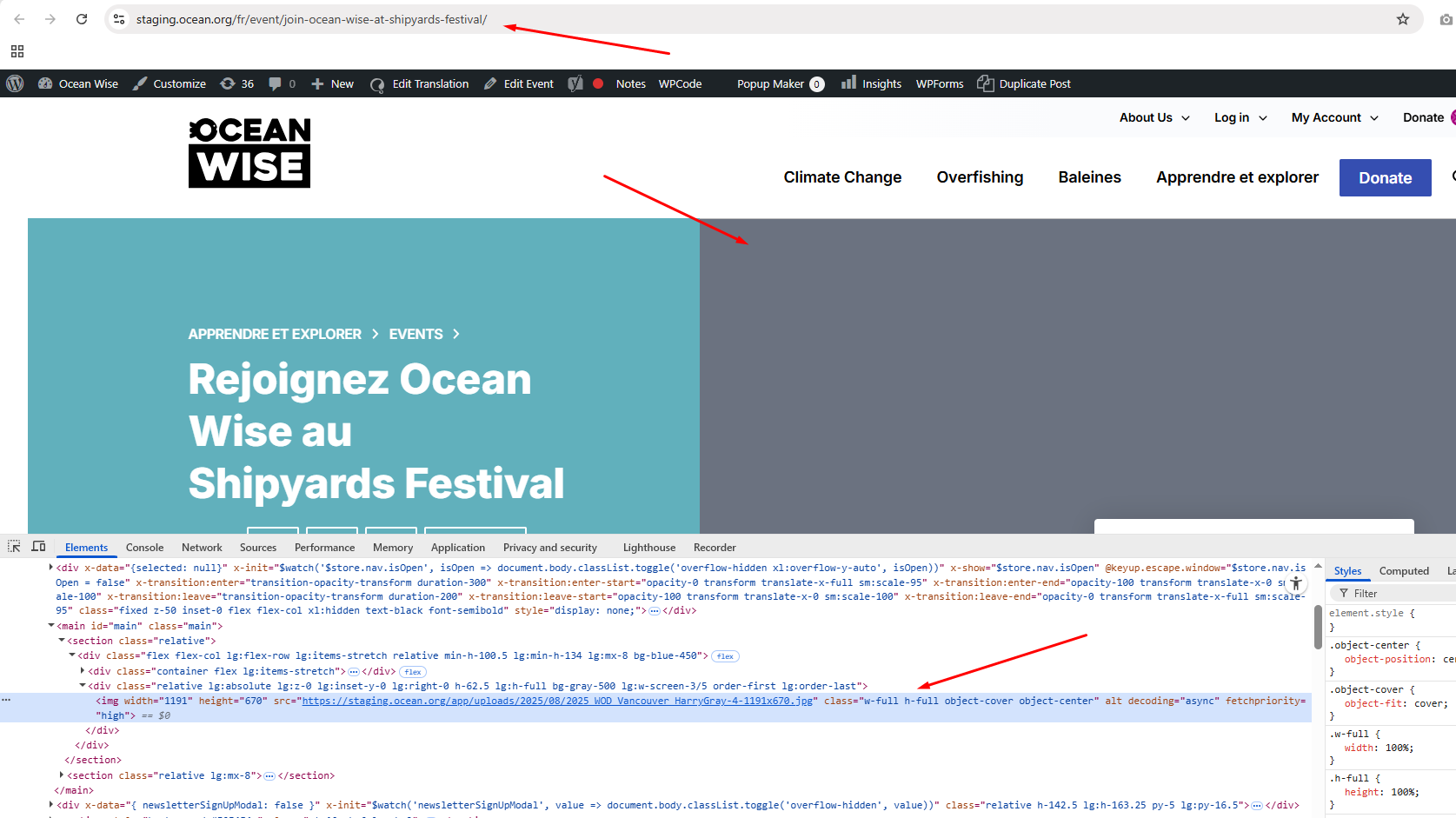 2. On the French version, the same featured image is instead trying to load from the local staging uploads directory (/wp-content/uploads/...), which results in a broken image.