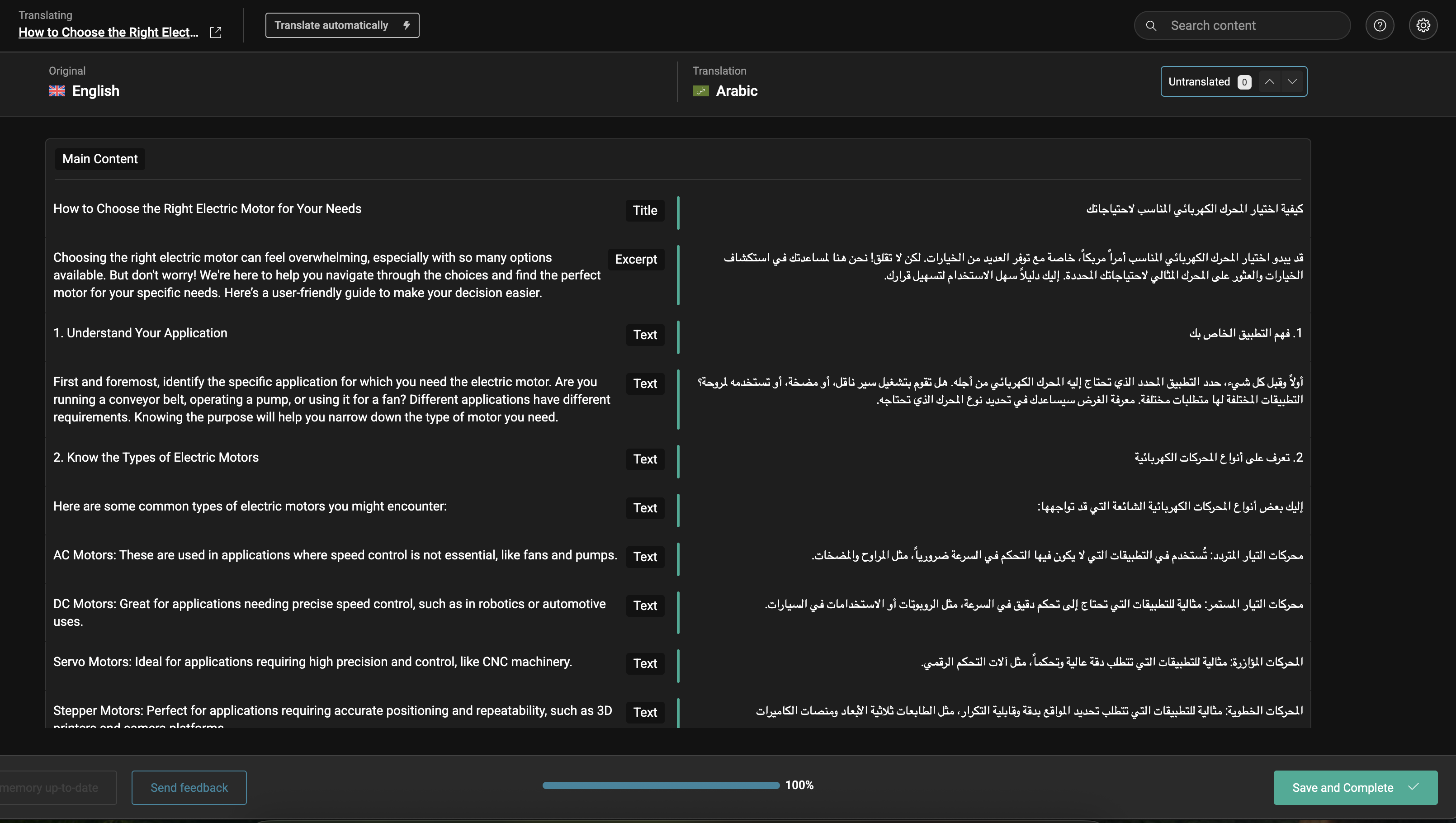 I also checked a few posts and pages that were translated earlier using the Advanced Translation Editor, and they appear as fully translated both on the frontend and within the Translation Editor. So you can use WPML’s Advanced Translation Editor translation memory, which allows previously translated content to be reused without any additional charges.