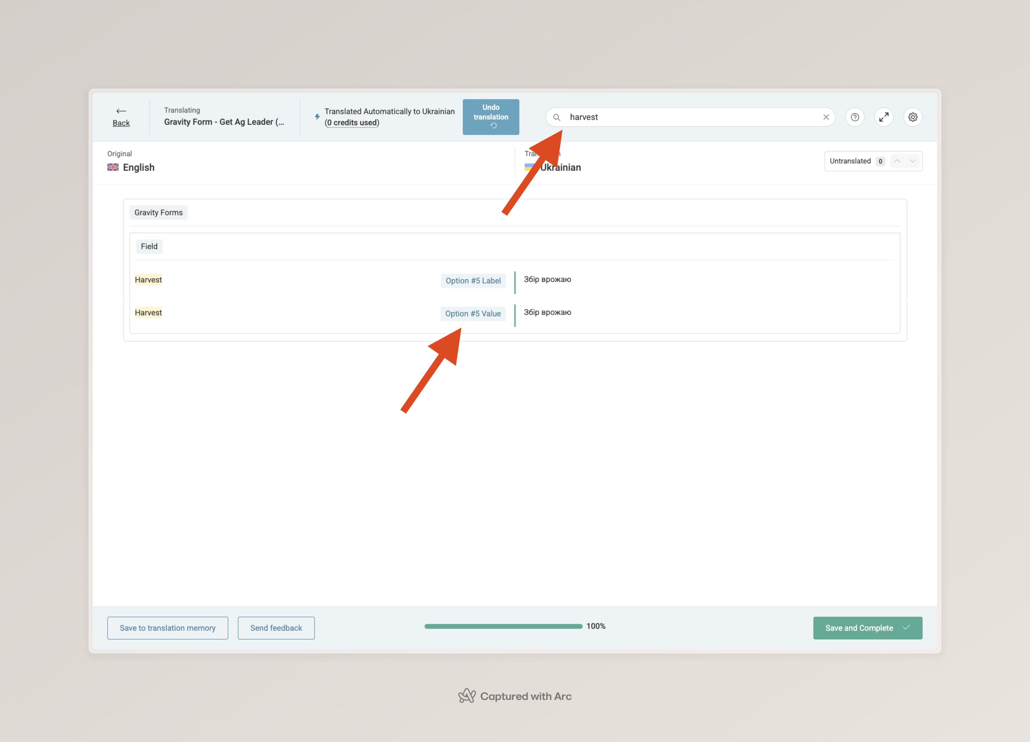 I manually translated one form as you guided me, but when I sent another one, I encountered an issue (please see the attached screenshot) in the 'Translations' section.