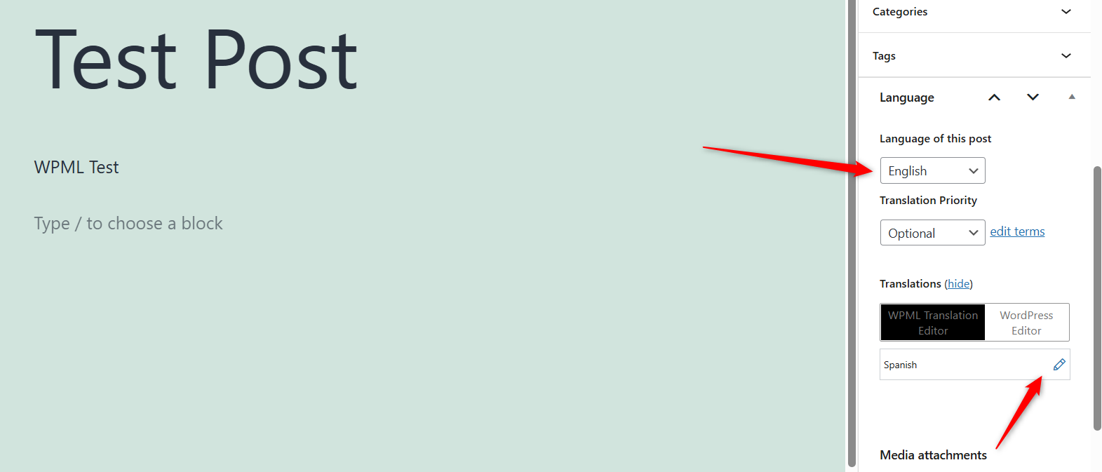 Hi Alina, Thank you for the updates. It is possible that this post was originally created in English or German and then translated into French. To confirm, please open the French post in the WordPress editor (as shown in the screenshot), check the Language widget (on the right side of the screen), and make sure whether it is a translation of a post (English or German) or was originally created in French. Please refer to the attached sample images for more details. -- Bigul |