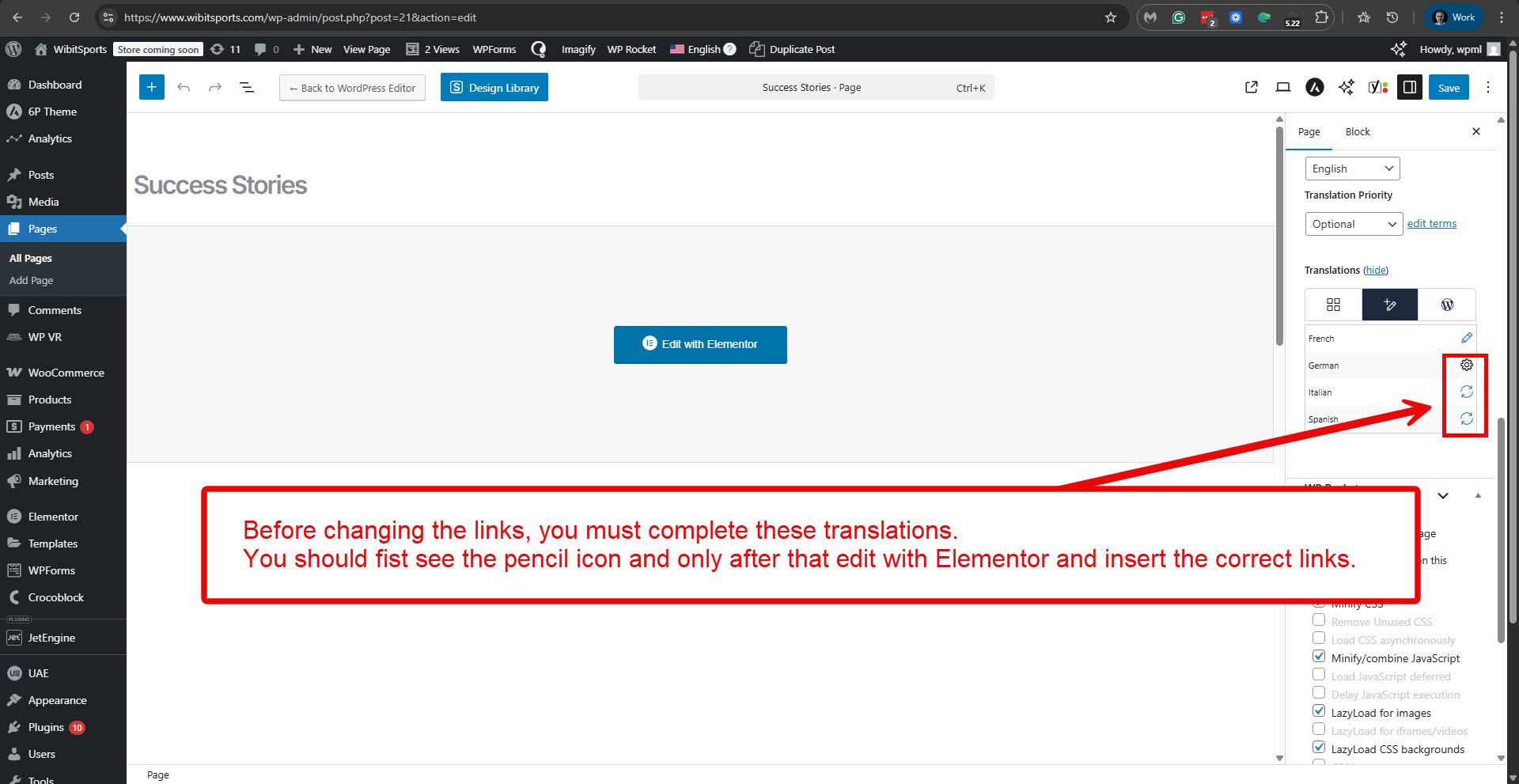 It is essential to know the following before proceeding with the steps suggested above. First, ensure the translation of the Success Stories page into the other languages is complete (you should see the pencil icon), and only then proceed with the steps. Please see the attached screenshot, complete-translations.jpg.