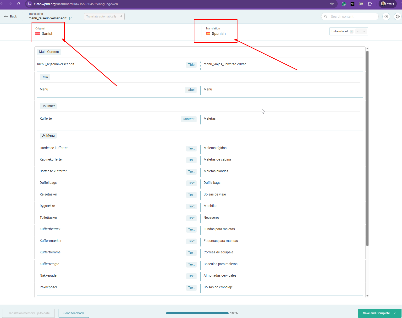 We have a possible new error, or else I misunderstand it. I wrote about it a bit earlier. It is: left and right colluns in the WPML window that comes after pressing the eye are both in spanish language. They are not totally equal in text, but almost, and the danish in left side is not danish.