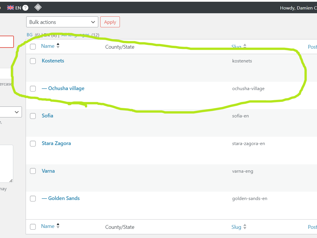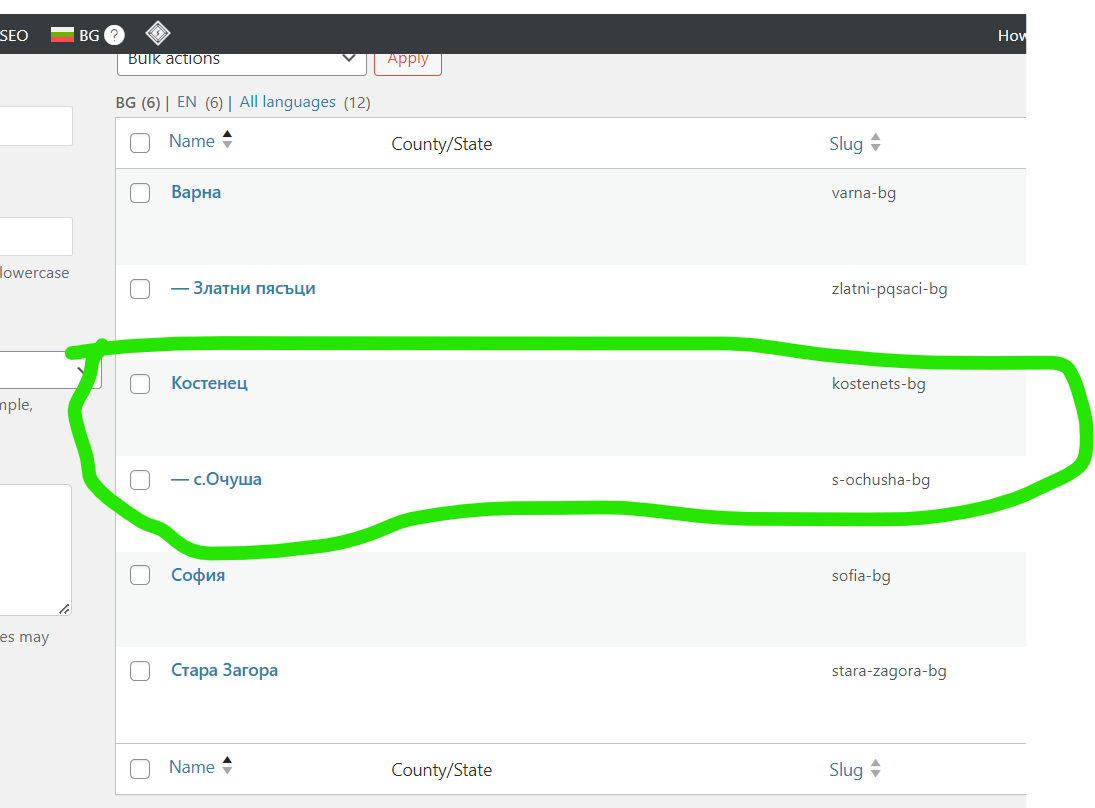 The taxonomy issue is another weird thing because by "fixing" it it's not equivalent to the Bulgarian version anymore where "ochusha-village" should have "kostenets" as parent.