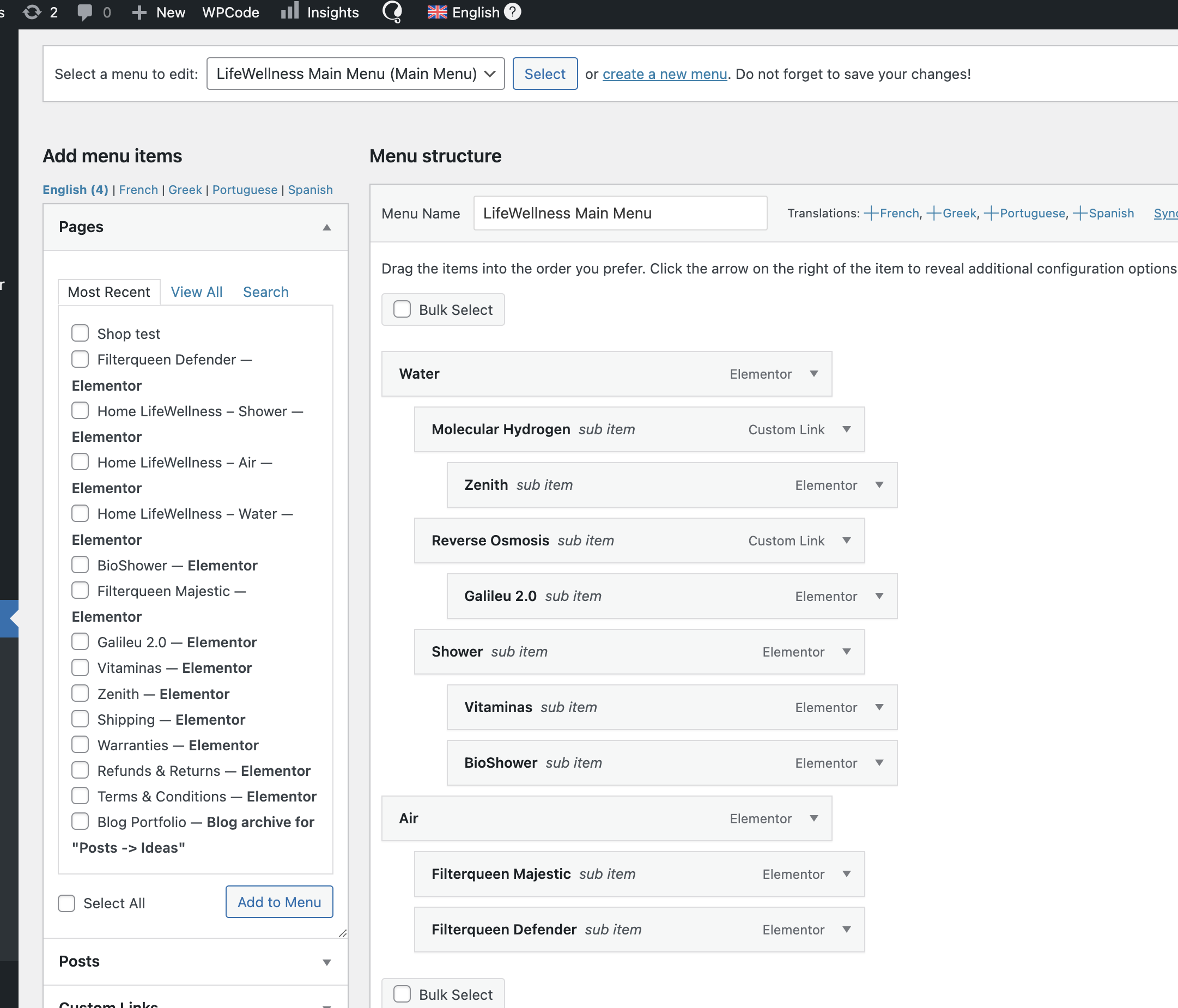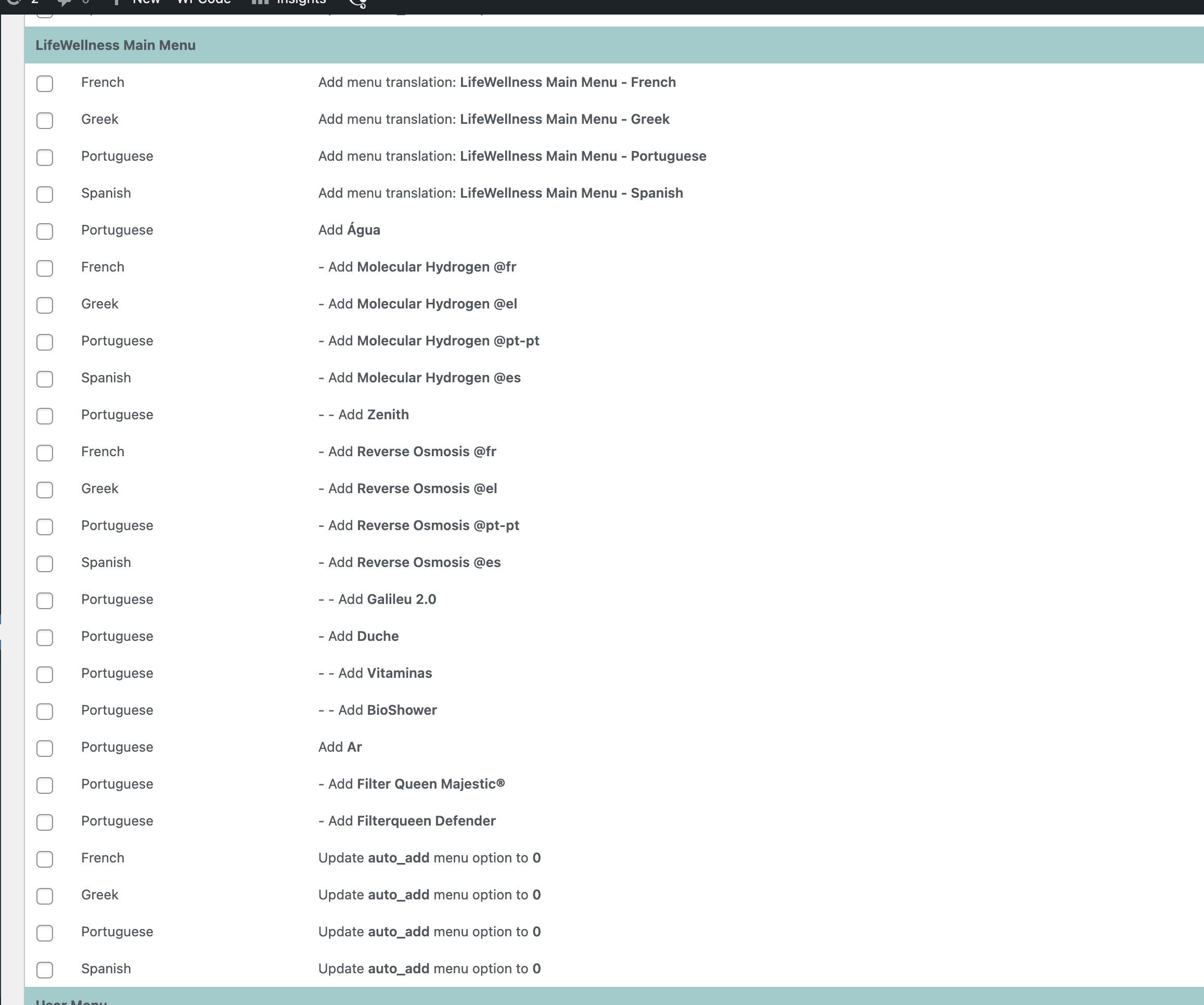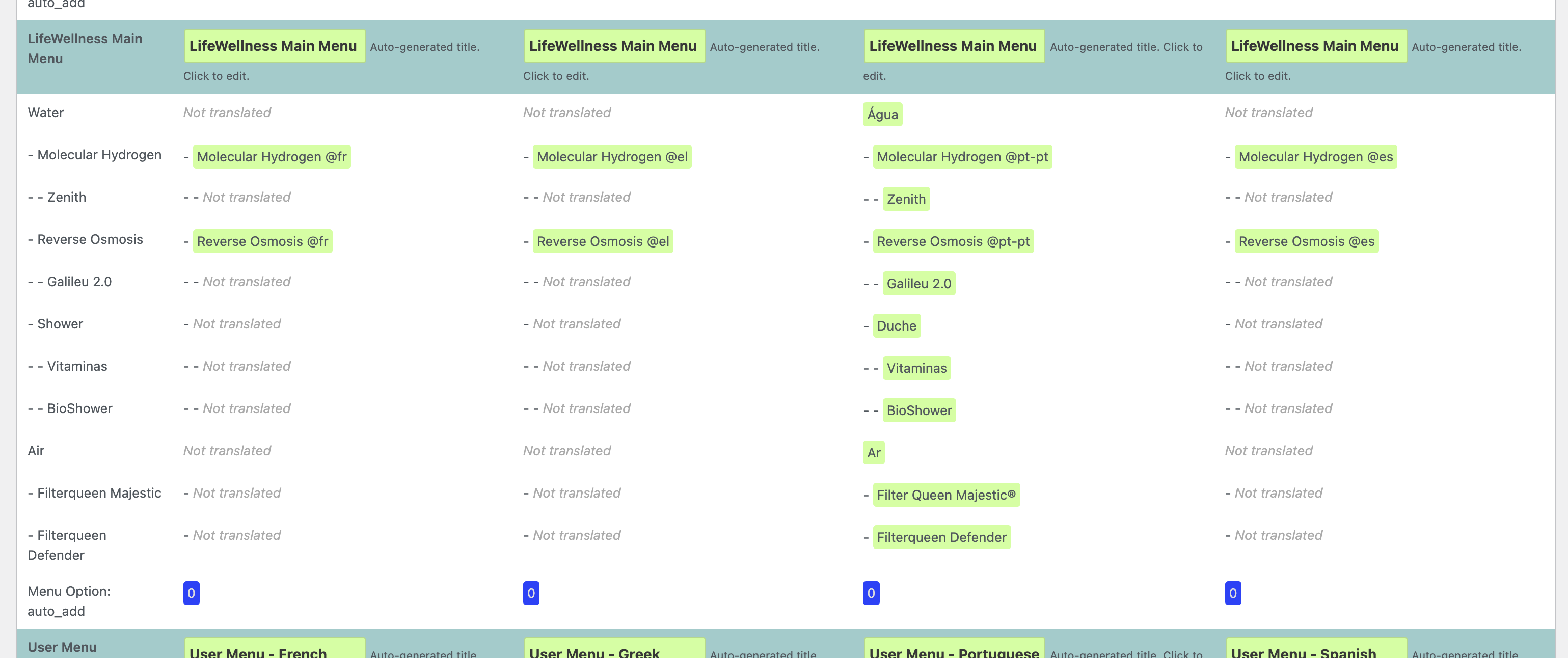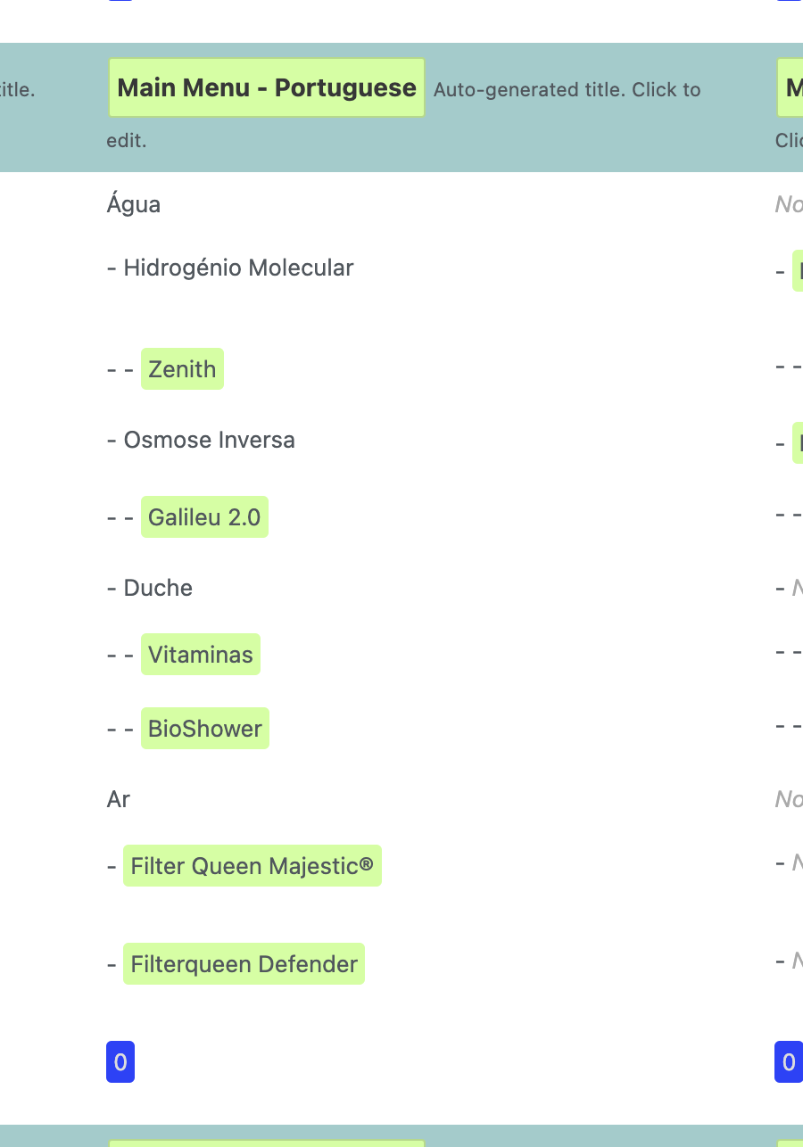 2. You're basically telling me to "translate the menu". Andrey, that's where I'm having issue. Did you read my issue? Some submenus are not working and some are. Look at the screenshots. Some of the translated to Portuguese words are "Água" - working, "Duche" - working, but some not "Hidrogénio Molecular" and "Osmose Inversa" - not working.