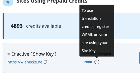 - At least, I see the site now on the "Manage credits for Automatic Translation" page.