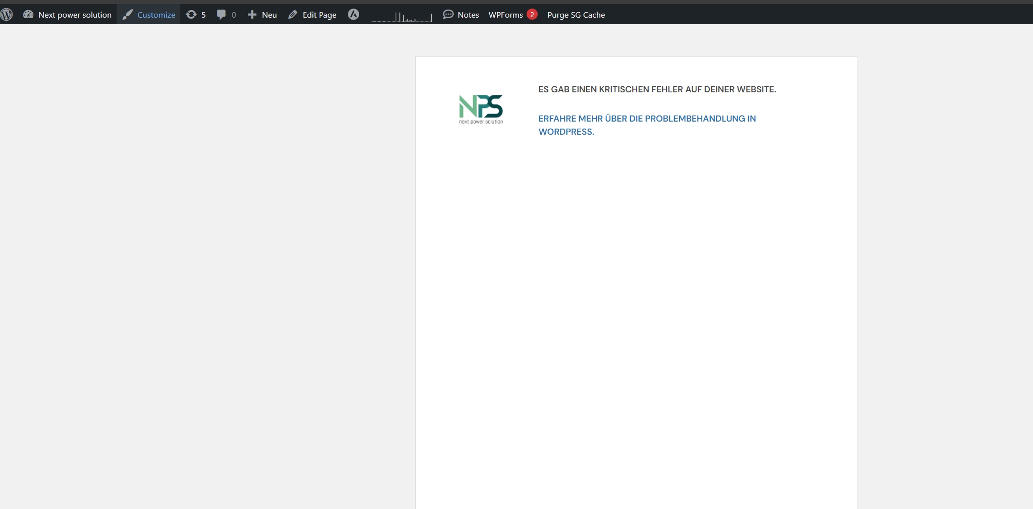 I am try to add German to my website. I finished the installation and selected German during the installation process,after that the website showed:ES GAB EINEN KRITISCHEN FEHLER AUF DEINER WEBSITE.(which means:THERE HAS BEEN A CRITICAL ERROR ON THIS WEBSITE.)