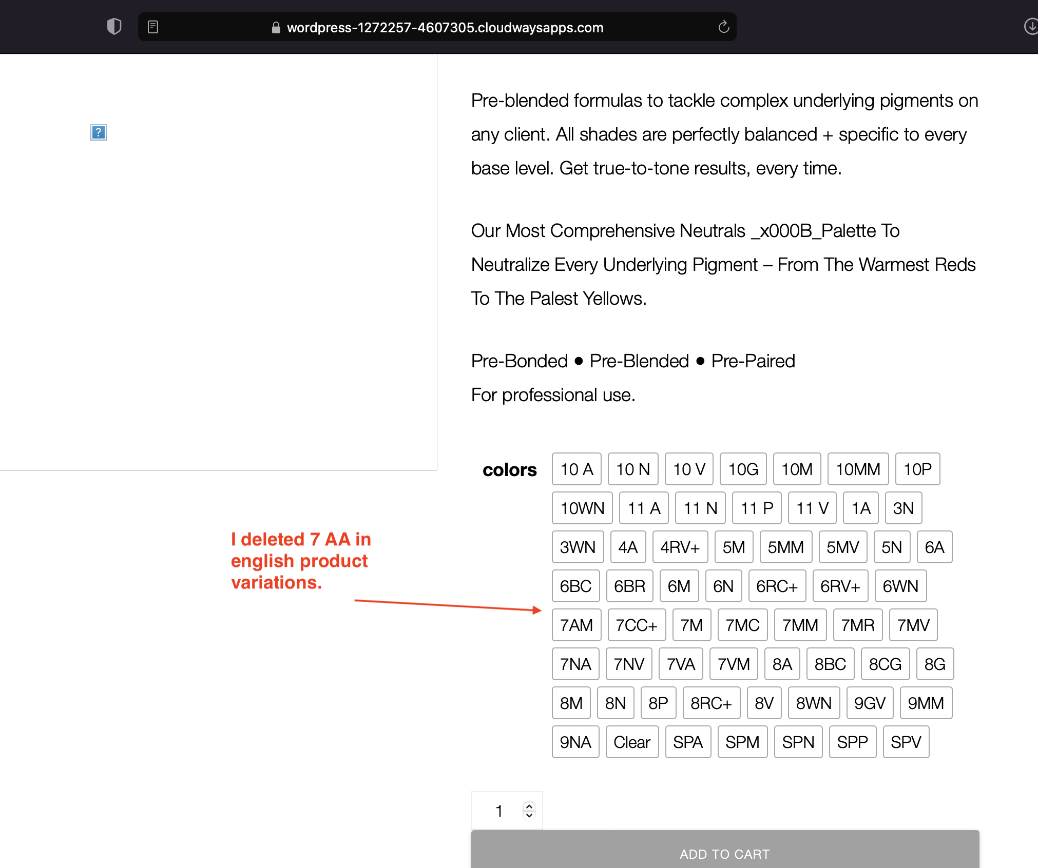 Now, this seems to be a bug to me, as one of your original products has 62 attributes, but only 59 variations and the translated product shows 62 attributes.