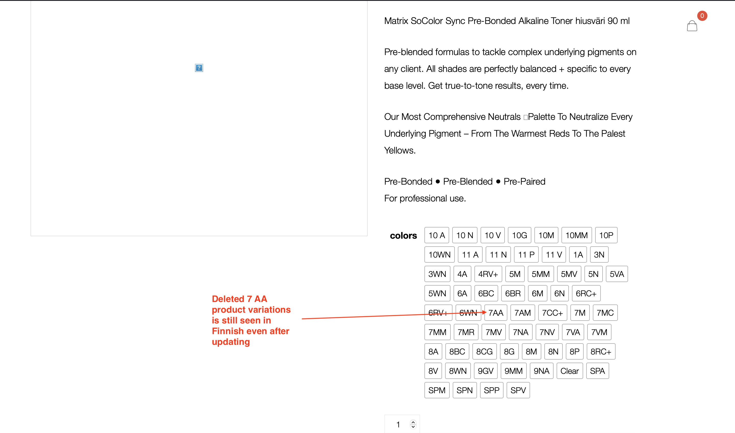 Also, issue is still there on live site. I updated plugins like you said on our real site. Then went to update this product: hidden link (I updated original product and Finnish using WPML advanced translation editor) but as you can see still variations are not being seen.