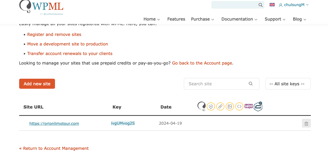 1. Visit https://wpml.org/account/sites