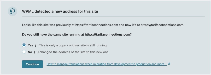 Estoy intentando resolver un aviso de WPML que indica que tenemos una nueva dirección para el sitio. Las dos URLs mencionadas en el aviso son iguales: hidden link.