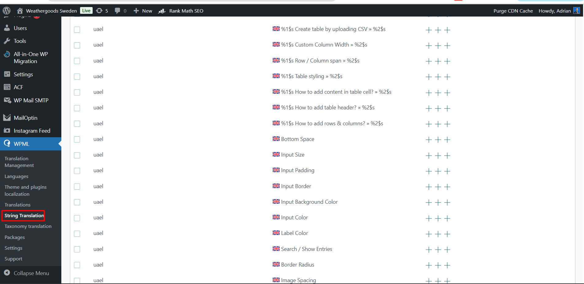3\. if I leave the WPML String Translation plugin active and start deleting translation strings in the wordpress admin panel, after deleting some of the translations, the error also disappears