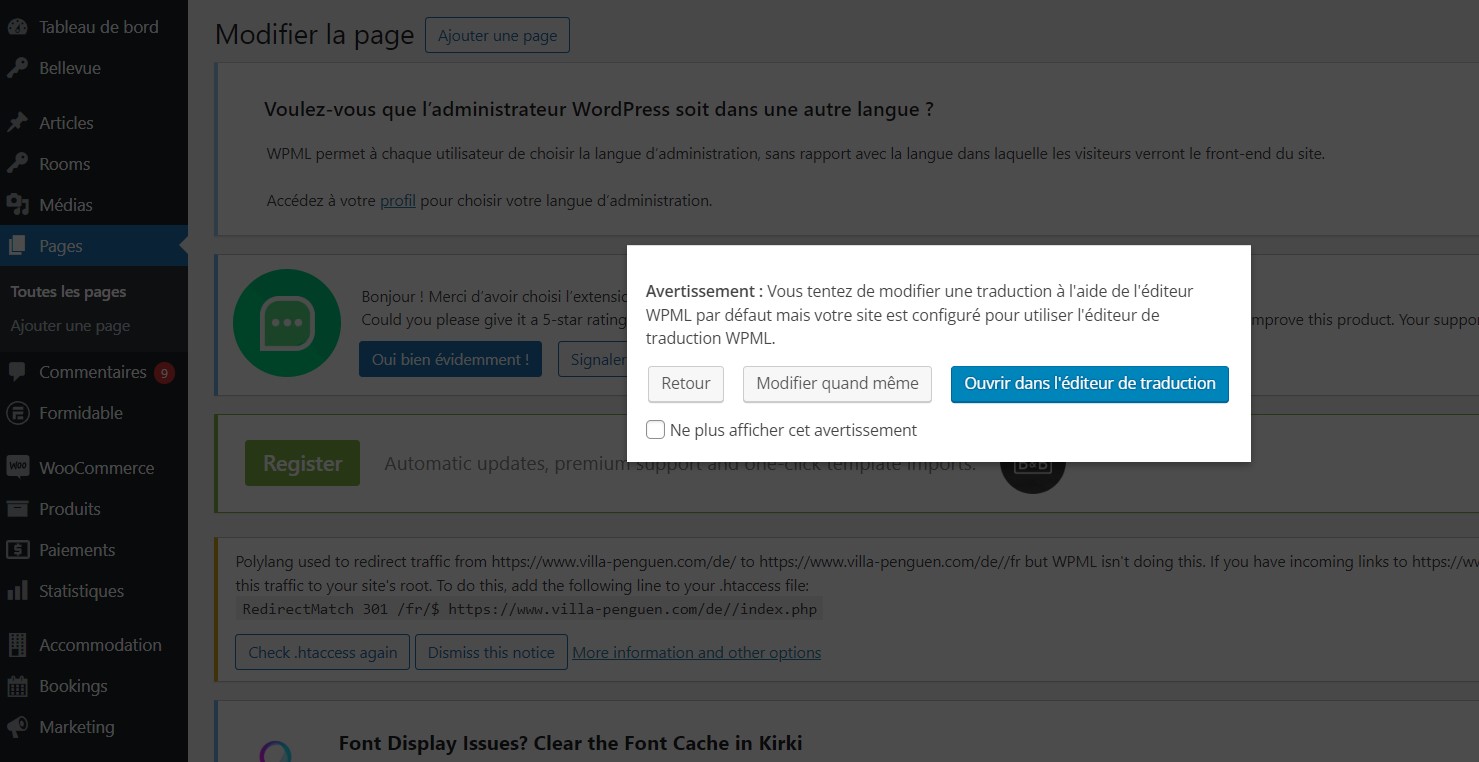 2/Comment faire pour modifier une page déjà traduite sans passer par l'éditeur WPML ?