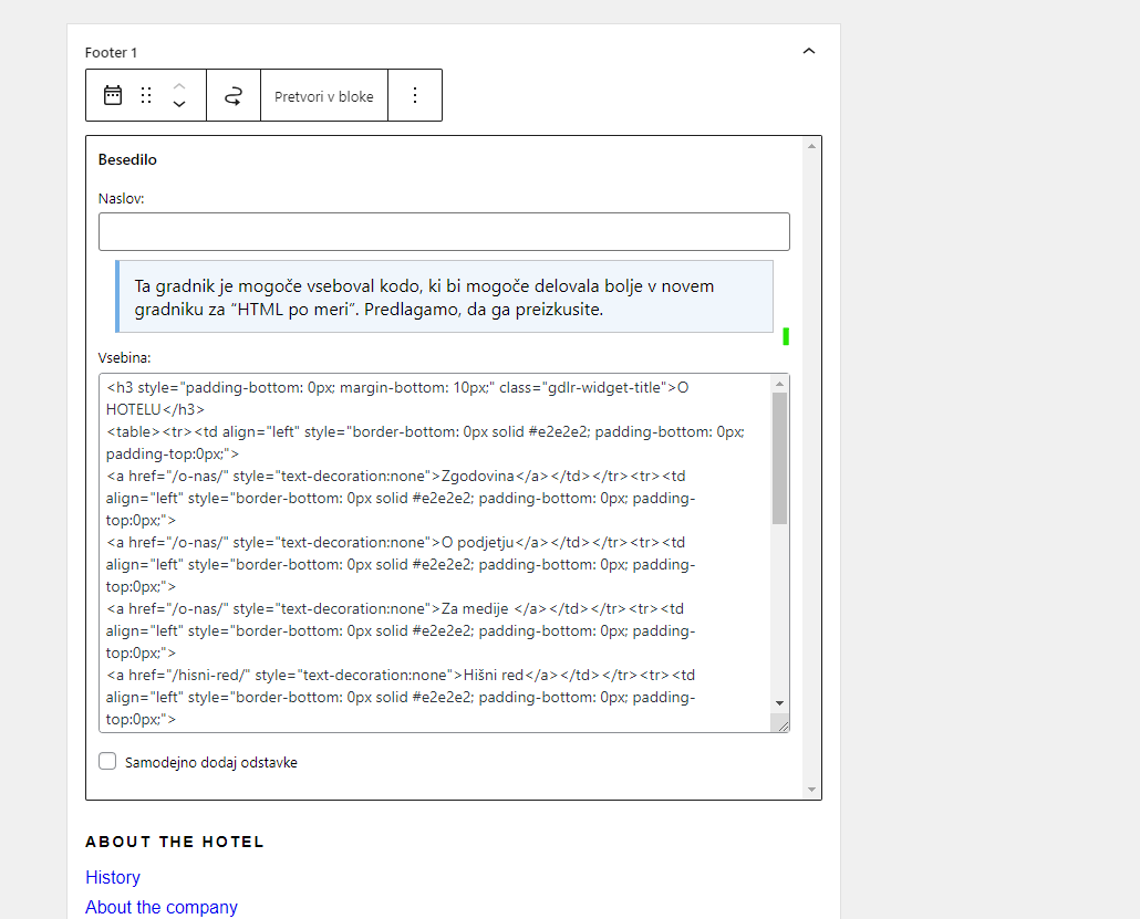 Background of the issue: I need to assign existing footer blocks to languages on my site lien caché. I have existing translations for the footer.