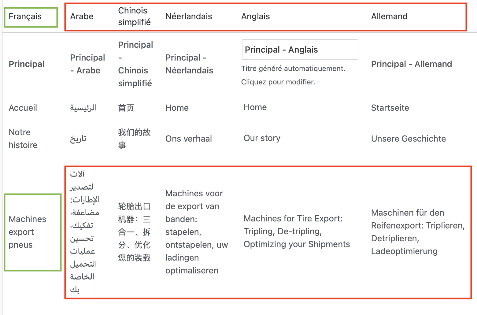 Vous rencontrez un problème avec la synchronisation des menus dans WPML utilisant le thème Divi. Bien que les menus soient correctement synchronisés entre les langues et que les liens pointent vers les pages traduites, les 'Titres de navigation' personnalisés définis dans Apparence > Menus ne sont pas pris en compte. À la place, WPML utilise le titre de la page traduite, ce qui rend les libellés des menus trop longs et imprécis.