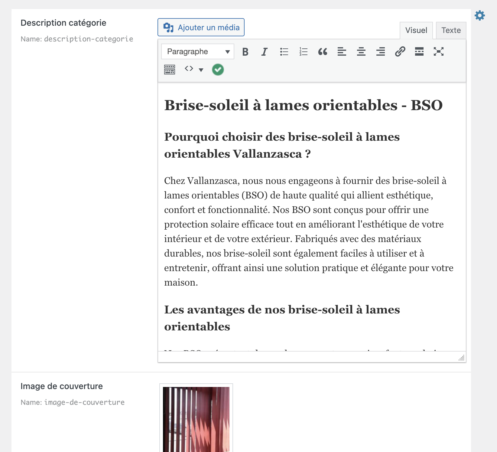 Sur la seconde, on voit mes champs personnalisés qui apparaissent (mais sur la page catégorie)