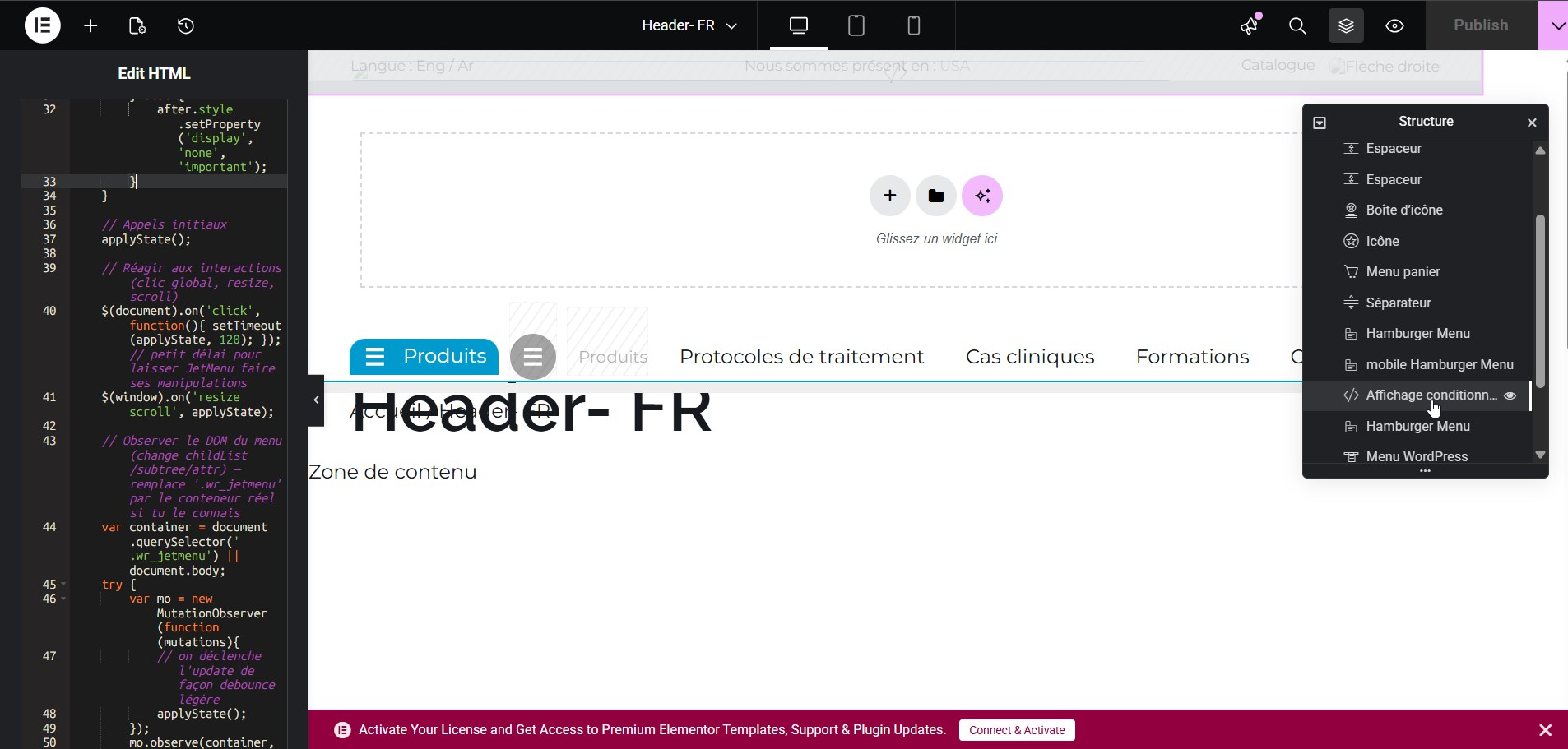 1. Nous avons modifié le template d’en-tête pour supprimer le JavaScript personnalisé.