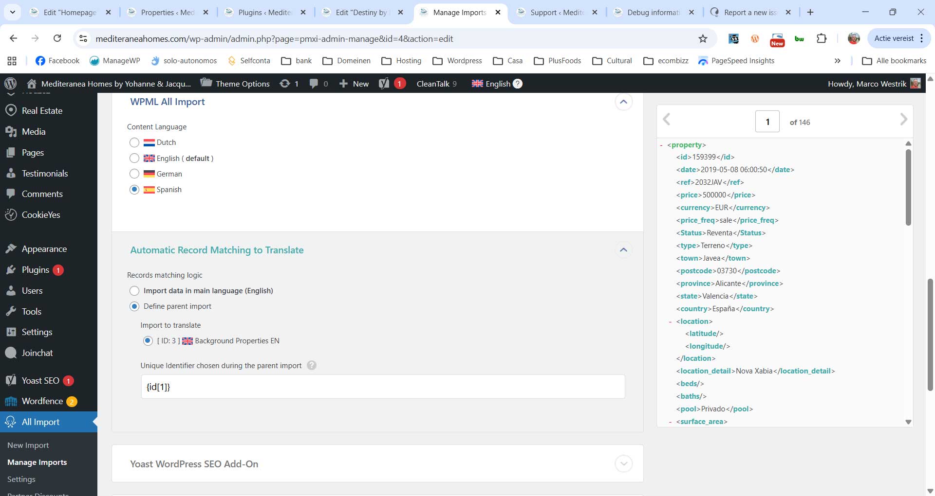 i can import the properties and use the wpml all import plugin. the properties are imported in the specified languages, but the translations are not connected. so gthe translations are imported as new posts, instead of translations of existing posts.