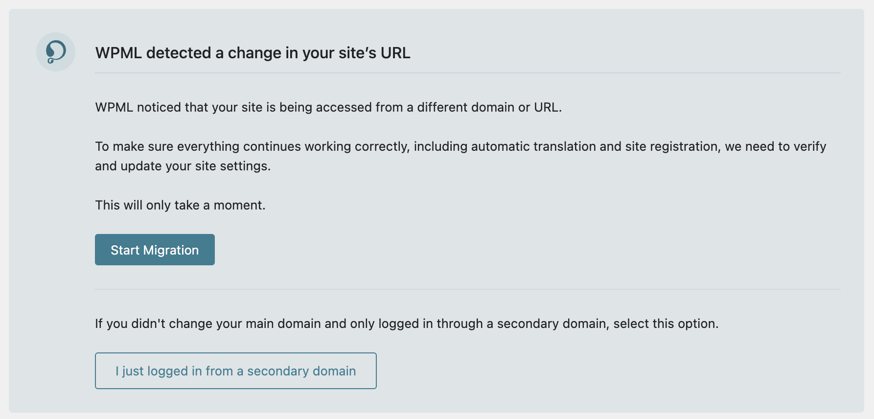 I see the message 'WPML detected a change in your site’s URL' in the production site dashboard.