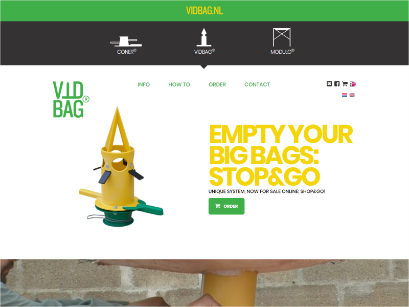 E-commerce website for the unique system of big bag dispenser. Available in Dutch and English for international customers.